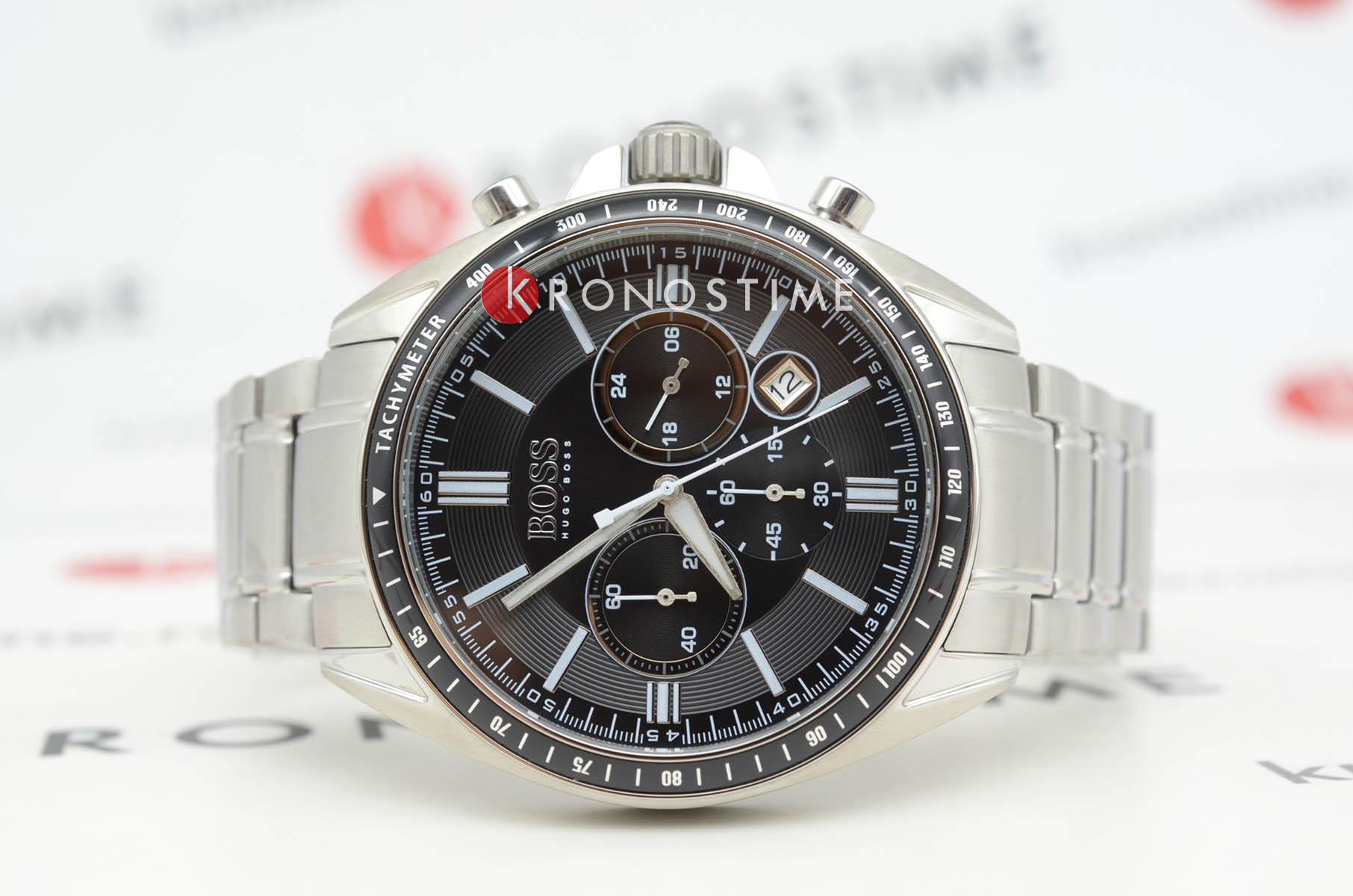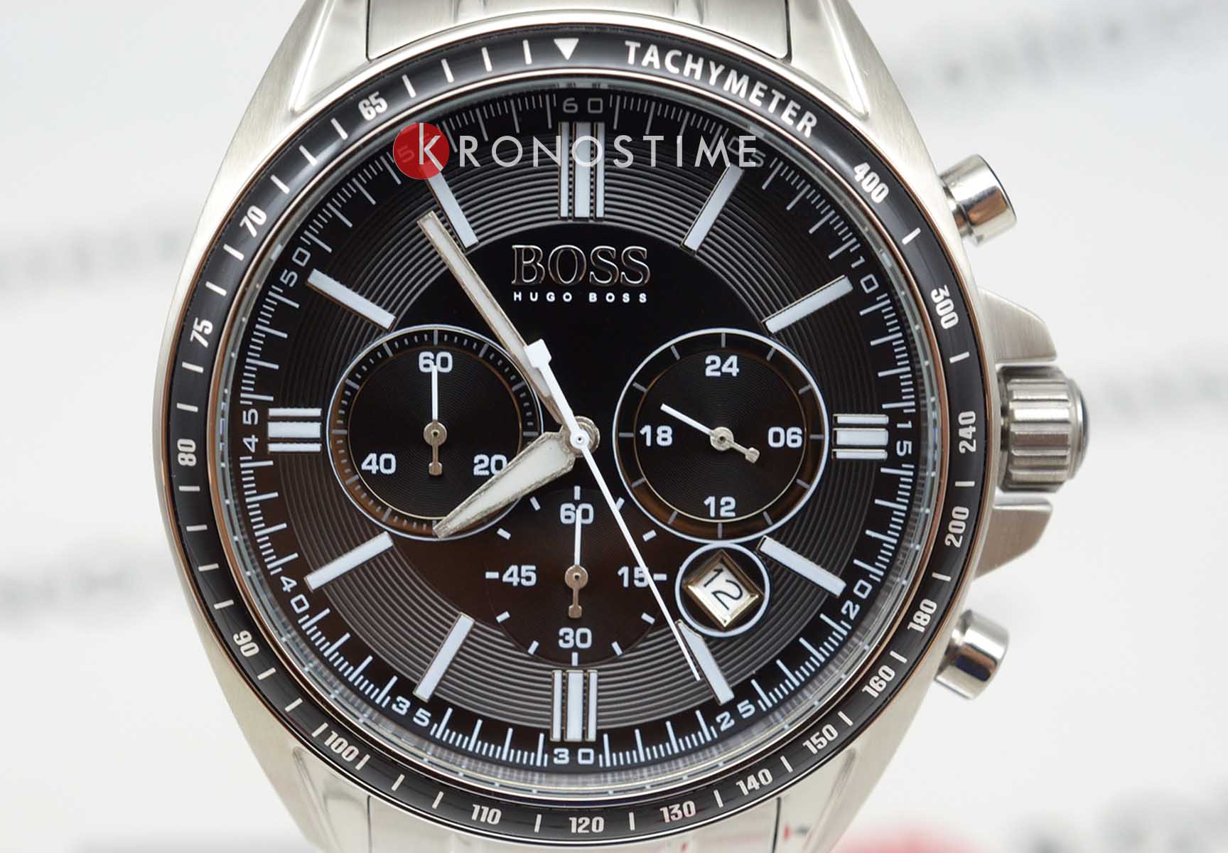 Мужские кварцевые часы Hugo Boss HB1513080 представляют собой стильный хронографХронографФункция позволяет измерять отрезки времени с особой точностью: часы, минуты, секунды. Верным признаком хронографа является наличие на циферблате 3 дополнительных окошек-счётчиков. с корпусом диаметром 44 мм из нержавеющей стали, дополненным черным циферблатом с серебристыми стрелками и индексами для оптимальной читаемости. Модель оснащена высокоточным кварцевым механизмом с функцией хронографаХронографФункция позволяет измерять отрезки времени с особой точностью: часы, минуты, секунды. Верным признаком хронографа является наличие на циферблате 3 дополнительных окошек-счётчиков., включая 60-минутный счетчик и 24-часовой индикатор, а также тахиметрической шкалой на неподвижном безелеБезельВнешний ободок, закрепляющий стекло. В спортивных часах так называется поворотное кольцо с делениями на циферблате, выполняет роль таймера – замеряет отрезки времени на шкале. Неподвижный безель – элемент декора. Однонаправленно вращающийся безель на дайверских часах позволяет фиксировать моменты погружения и выныривания на поверхность. с IP-покрытиемIP-покрытиеМетод ионного напыления. Демонстрирует повышенную устойчивость к истиранию, окислению и химическим веществам. Под воздействием высокого давления и температуры около 1500°C молекулы металла надёжно соединяются с частицами корпуса часов. для расчетов скорости. Циферблат защищен устойчивым к царапинам минеральным стекломМинеральное стеклоМинеральное стекло представляет собой искусственно выращенный минерал кварца. Такое стекло отличается особой устойчивостью к повреждениям и царапинам. Уступает по некоторым качествам сапфировому стеклу., а водонепроницаемость 5 ATM (50 метров) обеспечивает защиту от брызг и дождя, делая часы практичными для повседневного использования. Стальной браслет с застёжкой «бабочка»Застёжка "бабочка"Такой вид застёжки дополняется предохранителями, помогающими избежать случайного раскрытия браслета. Обладают изящным исполнением. обеспечивает надежную и комфортную посадку на запястье, подчеркивая спортивно-элегантный стиль модели. Люминесцентное покрытиеЛюминесцентное покрытиеПозволяет считывать показания времени в темноте. Производители наносят на стрелки, часовые индексы, безель или поверхность циферблата светонакопительный состав, дающий холодное свечение. на стрелках обеспечивает отличную видимость в темноте.
