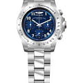 Часы оснащены функцией хронографаХронографФункция позволяет измерять отрезки времени с особой точностью: часы, минуты, секунды. Верным признаком хронографа является наличие на циферблате 3 дополнительных окошек-счётчиков. и тахиметрТахиметрРазмеченная шкала, располагается на ободке или безеле часов. Тахиметр позволяет рассчитать скорость на определённом участке пути, расстояние измеряется в километрах или милях., что позволяет точно измерять скорость и время различных событий. Циферблат защищен прочным минеральным стекломМинеральное стеклоМинеральное стекло представляет собой искусственно выращенный минерал кварца. Такое стекло отличается особой устойчивостью к повреждениям и царапинам. Уступает по некоторым качествам сапфировому стеклу., обеспечивающим высокую устойчивость к царапинам. Завинчивающаяся рифленая заводная головка с защитой гарантирует надежную герметизацию механизма, а завинчивающаяся задняя крышка добавляет дополнительную защиту от внешних воздействий.