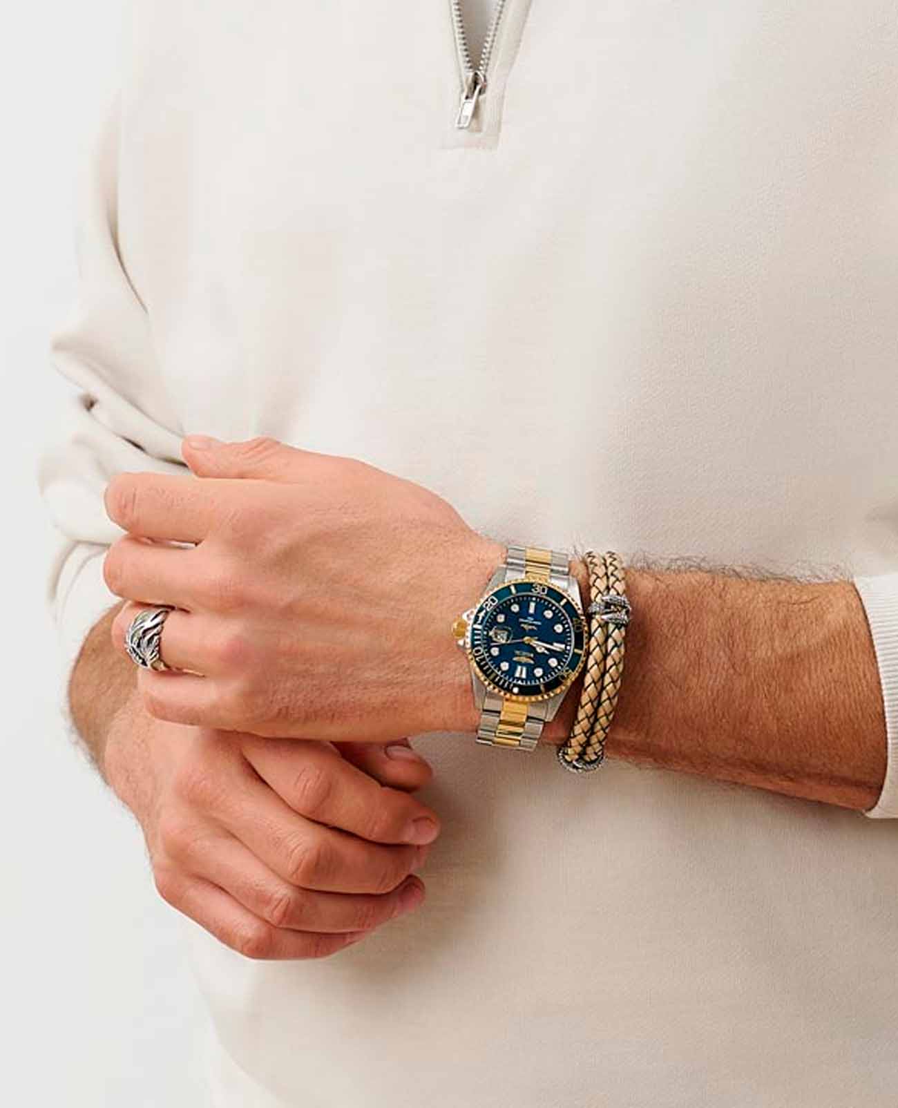 Мужские наручные часы Invicta IN30021 из коллекции Pro Diver сочетают в себе классический дизайн и функциональность для активного образа жизни. БезельБезельВнешний ободок, закрепляющий стекло. В спортивных часах так называется поворотное кольцо с делениями на циферблате, выполняет роль таймера – замеряет отрезки времени на шкале. Неподвижный безель – элемент декора. Однонаправленно вращающийся безель на дайверских часах позволяет фиксировать моменты погружения и выныривания на поверхность. с IP-покрытиемIP-покрытиеМетод ионного напыления. Демонстрирует повышенную устойчивость к истиранию, окислению и химическим веществам. Под воздействием высокого давления и температуры около 1500°C молекулы металла надёжно соединяются с частицами корпуса часов., что придает ей современный вид и защищает от внешних воздействий. Браслет выполнен из нержавеющей стали с частичным IP-покрытиемIP-покрытиеМетод ионного напыления. Демонстрирует повышенную устойчивость к истиранию, окислению и химическим веществам. Под воздействием высокого давления и температуры около 1500°C молекулы металла надёжно соединяются с частицами корпуса часов., а также оснащен раскладной застежкойРаскладная застёжкаТакой тип застёжки используется только на браслетах из металла. Она никогда не раскрывается полностью, происходит разделение на 2 и более частей. Раскладывающая застёжка снизит вероятность потери часов к минимуму. с системой блокировки, обеспечивающей комфортное ношение . Синий циферблат дополнен люминесцентными стрелками и метками Tritnite, гарантирующими отличную видимость в темноте. Для защиты используется минеральное стеклоМинеральное стеклоМинеральное стекло представляет собой искусственно выращенный минерал кварца. Такое стекло отличается особой устойчивостью к повреждениям и царапинам. Уступает по некоторым качествам сапфировому стеклу., которое обеспечивает прочность и устойчивость к царапинам . Часы работают на кварцевом механизме, что гарантирует точное время без необходимости подзаводки . На циферблате присутствует окно даты с увеличительным стеклом, добавляющим удобства при использовании. Водонепроницаемость модели достигает 100WR, что позволяет использовать часы во время плавания и других водных видов спорта .