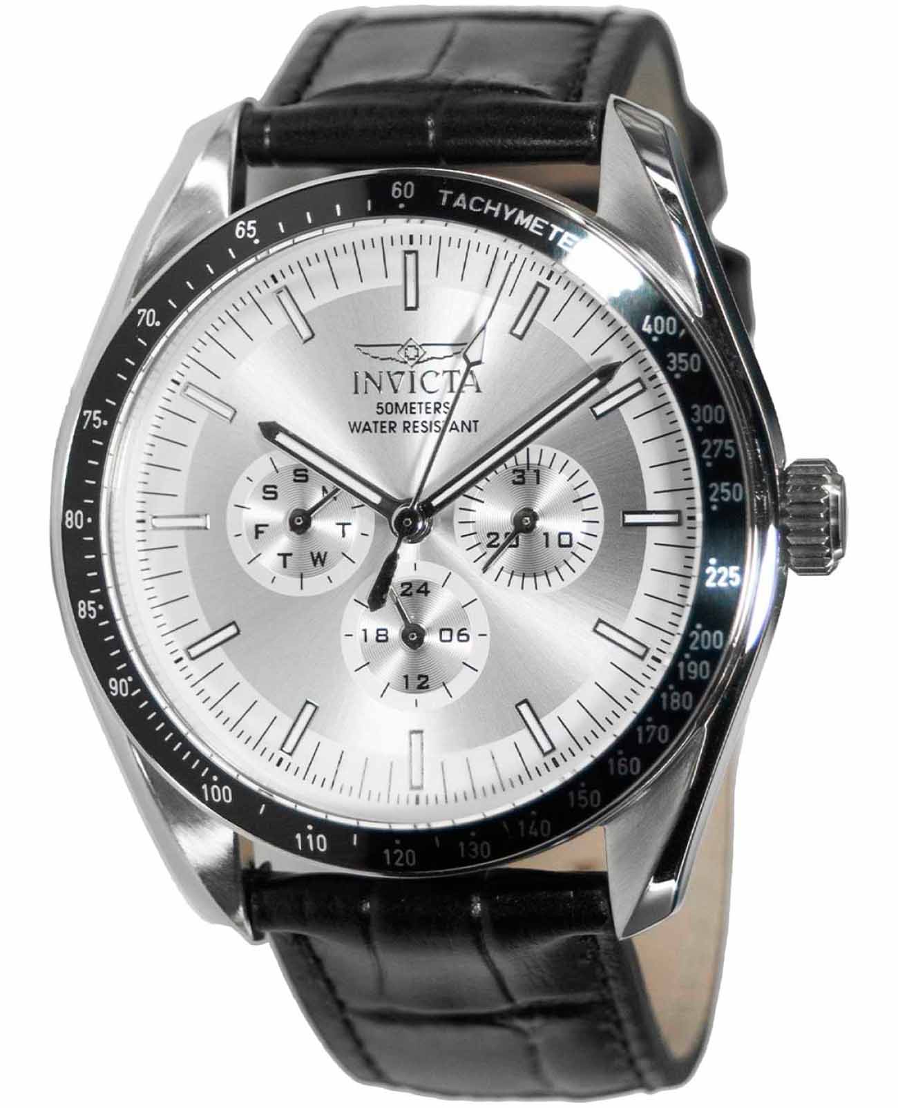 Мужские наручные часы Invicta Specialty IN45968 из коллекции Specialty сочетают в себе спортивный дизайн и надежность современных технологий. Модель обладает круглым корпусом диаметром 44 мм, выполненным из нержавеющей стали, что обеспечивает высокую устойчивость к внешним воздействиям . БезельБезельВнешний ободок, закрепляющий стекло. В спортивных часах так называется поворотное кольцо с делениями на циферблате, выполняет роль таймера – замеряет отрезки времени на шкале. Неподвижный безель – элемент декора. Однонаправленно вращающийся безель на дайверских часах позволяет фиксировать моменты погружения и выныривания на поверхность. с IP-покрытиемIP-покрытиеМетод ионного напыления. Демонстрирует повышенную устойчивость к истиранию, окислению и химическим веществам. Под воздействием высокого давления и температуры около 1500°C молекулы металла надёжно соединяются с частицами корпуса часов. выполнен с тахиметрической шкалой в двухцветном (серебристо-черном) алюминиевом оформлении, придающем часам дополнительную элегантность . Ремешок часов выполнен из черной кожи с классической застежкой, гарантируя комфортное ношение в течение дня . Серебристый циферблат дополнен метками в виде штрихов и светящимися стрелками с люминесцентным покрытиемЛюминесцентное покрытиеПозволяет считывать показания времени в темноте. Производители наносят на стрелки, часовые индексы, безель или поверхность циферблата светонакопительный состав, дающий холодное свечение. Tritnite, которые обеспечивают отличную видимость даже в темноте после кратковременной зарядки светом . Циферблат украшен технологией Sunray (солнечные лучи), что создает эффект игры света . На циферблате также вынесены отдельные окна для даты, дня недели и индикации второго часового пояса. Для защиты используется минеральное стеклоМинеральное стеклоМинеральное стекло представляет собой искусственно выращенный минерал кварца. Такое стекло отличается особой устойчивостью к повреждениям и царапинам. Уступает по некоторым качествам сапфировому стеклу. Flame Fusion, которое обеспечивает прочность и устойчивость к царапинам . Часы оснащены кварцевым механизмом калибра Seiko TMI VH63, что гарантирует точность хода без необходимости подзаводки . Водонепроницаемость часов достигает 50 метров (5 атмосфер), что позволяет использовать их во время мытья рук или плавания, однако не рекомендуется для глубоководного дайвинга . Сочетание практичности, надежности и стильного дизайна делает эту модель универсальным аксессуаром как для повседневной носки, так и для занятий спортом .