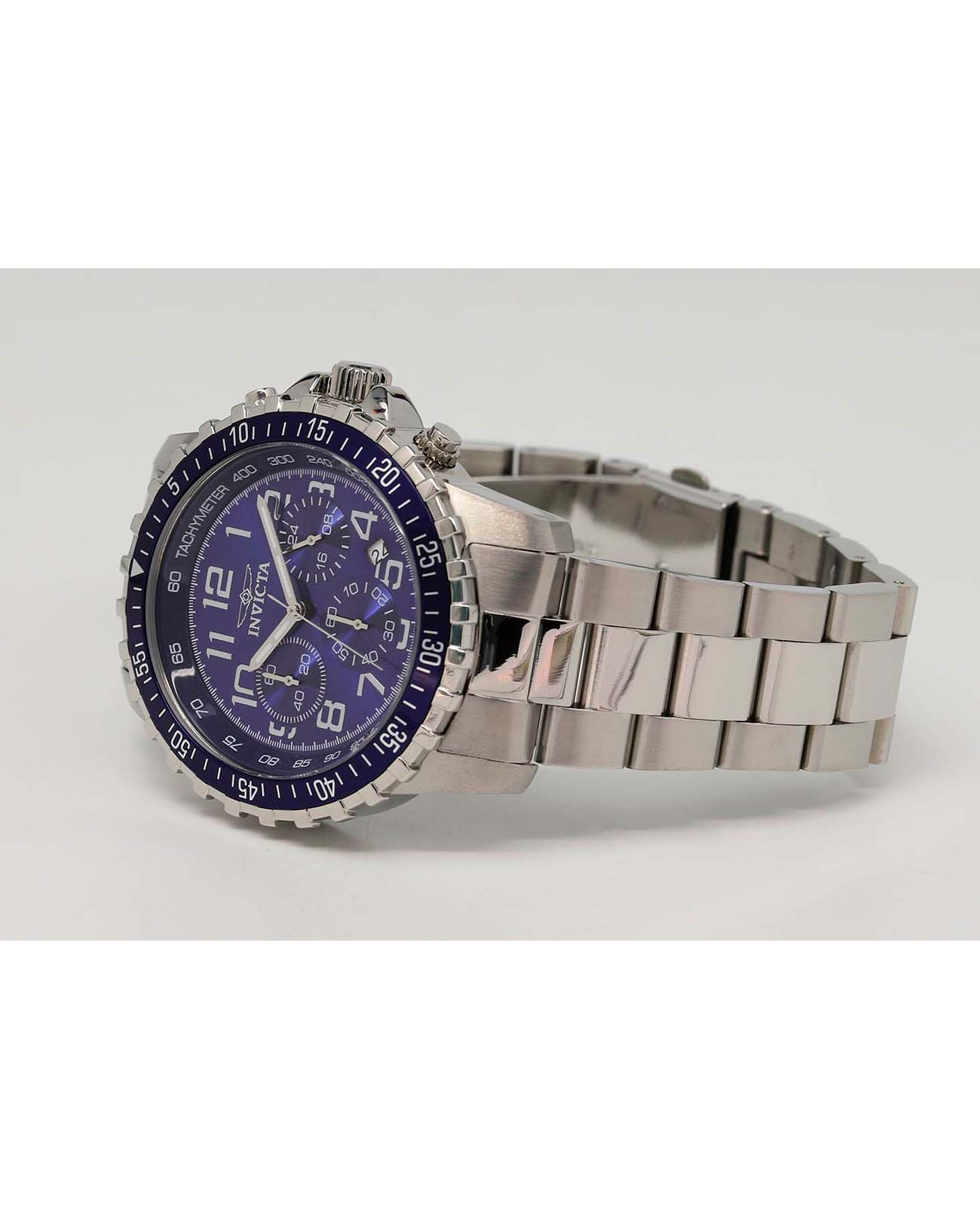 Мужские наручные часы-хронографХронографФункция позволяет измерять отрезки времени с особой точностью: часы, минуты, секунды. Верным признаком хронографа является наличие на циферблате 3 дополнительных окошек-счётчиков. Invicta Specialty IN6621 из коллекции Specialty сочетают в себе спортивный дизайн и надежность современных технологий . Модель обладает круглым корпусом диаметром 45 мм, изготовленным из нержавеющей стали, что обеспечивает высокую устойчивость к внешним воздействиям . БезельБезельВнешний ободок, закрепляющий стекло. В спортивных часах так называется поворотное кольцо с делениями на циферблате, выполняет роль таймера – замеряет отрезки времени на шкале. Неподвижный безель – элемент декора. Однонаправленно вращающийся безель на дайверских часах позволяет фиксировать моменты погружения и выныривания на поверхность. с IP-покрытиемIP-покрытиеМетод ионного напыления. Демонстрирует повышенную устойчивость к истиранию, окислению и химическим веществам. Под воздействием высокого давления и температуры около 1500°C молекулы металла надёжно соединяются с частицами корпуса часов. выполнен с рифленой отделкой, придающей часам дополнительную элегантность . Браслет также выполнен из нержавеющей стали с раскладывающейся застежкойРаскладная застёжкаТакой тип застёжки используется только на браслетах из металла. Она никогда не раскрывается полностью, происходит разделение на 2 и более частей. Раскладывающая застёжка снизит вероятность потери часов к минимуму., гарантирующей комфортное ношение и безопасность . Синий циферблат дополнен метками в виде штрихов и светящимися стрелками с люминесцентным покрытиемЛюминесцентное покрытиеПозволяет считывать показания времени в темноте. Производители наносят на стрелки, часовые индексы, безель или поверхность циферблата светонакопительный состав, дающий холодное свечение., которые обеспечивают отличную видимость даже в темное время суток . Для защиты используется минеральное стеклоМинеральное стеклоМинеральное стекло представляет собой искусственно выращенный минерал кварца. Такое стекло отличается особой устойчивостью к повреждениям и царапинам. Уступает по некоторым качествам сапфировому стеклу., оснащенное антибликовым покрытием, что делает его устойчивым к царапинам и бликам . Часы оснащены кварцевым механизмом, что гарантирует точность хода без необходимости подзаводки . Модель также является хронографомХронографФункция позволяет измерять отрезки времени с особой точностью: часы, минуты, секунды. Верным признаком хронографа является наличие на циферблате 3 дополнительных окошек-счётчиков., оснащенным функцией секундомераСекундомерСекундоме́р — прибор, способный измерять интервалы времени с точностью до долей секунды., делая ее идеальной для активного образа жизни . Водонепроницаемость часов достигает 100 метров (10 атмосфер), что позволяет использовать их во время плавания и других водных видов спорта, однако не рекомендуется для глубоководного дайвинга . Сочетание практичности, надежности и стильного дизайна делает эту модель универсальным аксессуаром как для повседневной носки, так и для занятий спортом.