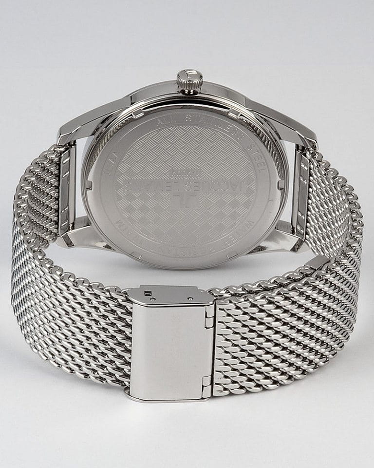 Наручные часы Jacques Lemans с классической раскладной застёжкойРаскладная застёжкаТакой тип застёжки используется только на браслетах из металла. Она никогда не раскрывается полностью, происходит разделение на 2 и более частей. Раскладывающая застёжка снизит вероятность потери часов к минимуму. призваны ставить на первое место индивидуальный стиль владельца, классическая элегантность придётся по вкусу каждому. Брендовые часы привлекают минималистичным дизайном, отсутствие вычурности и обилия декорирующих элементов делают модель лучшим решением для ежедневного применения. Аксессуар можно носить с деловыми костюмами и повседневной одеждой, он органично сочетается как с классическими брюками, так и с рваными джинсами. Это настоящее часовое искусство высокого качества, часы считаются актуальным вариантом на все времена и с идеальной точностью показывают время благодаря надёжному японскому механизму.