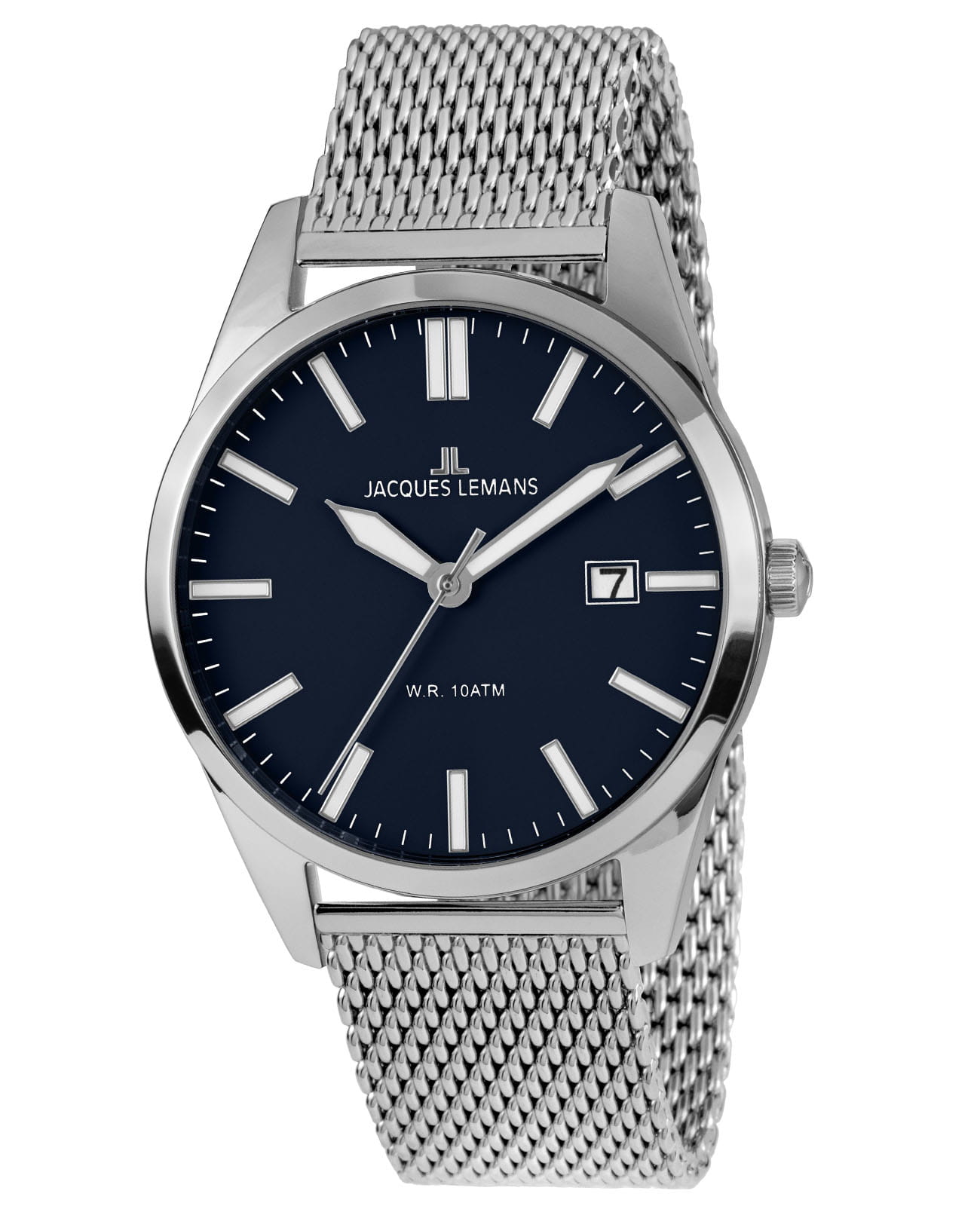 Наручные часы Jacques Lemans призваны ставить на первое место индивидуальный стиль владельца, классическая элегантность придётся по вкусу каждому. Брендовые часы привлекают минималистичным дизайном, отсутствие вычурности и обилия декорирующих элементов делают модель лучшим решением для ежедневного применения. Аксессуар можно носить с деловыми костюмами и повседневной одеждой, он органично сочетается как с классическими брюками, так и с рваными джинсами. Это настоящее часовое искусство высокого качества, часы считаются актуальным вариантом на все времена и с идеальной точностью показывают время благодаря надёжному японскому механизму.