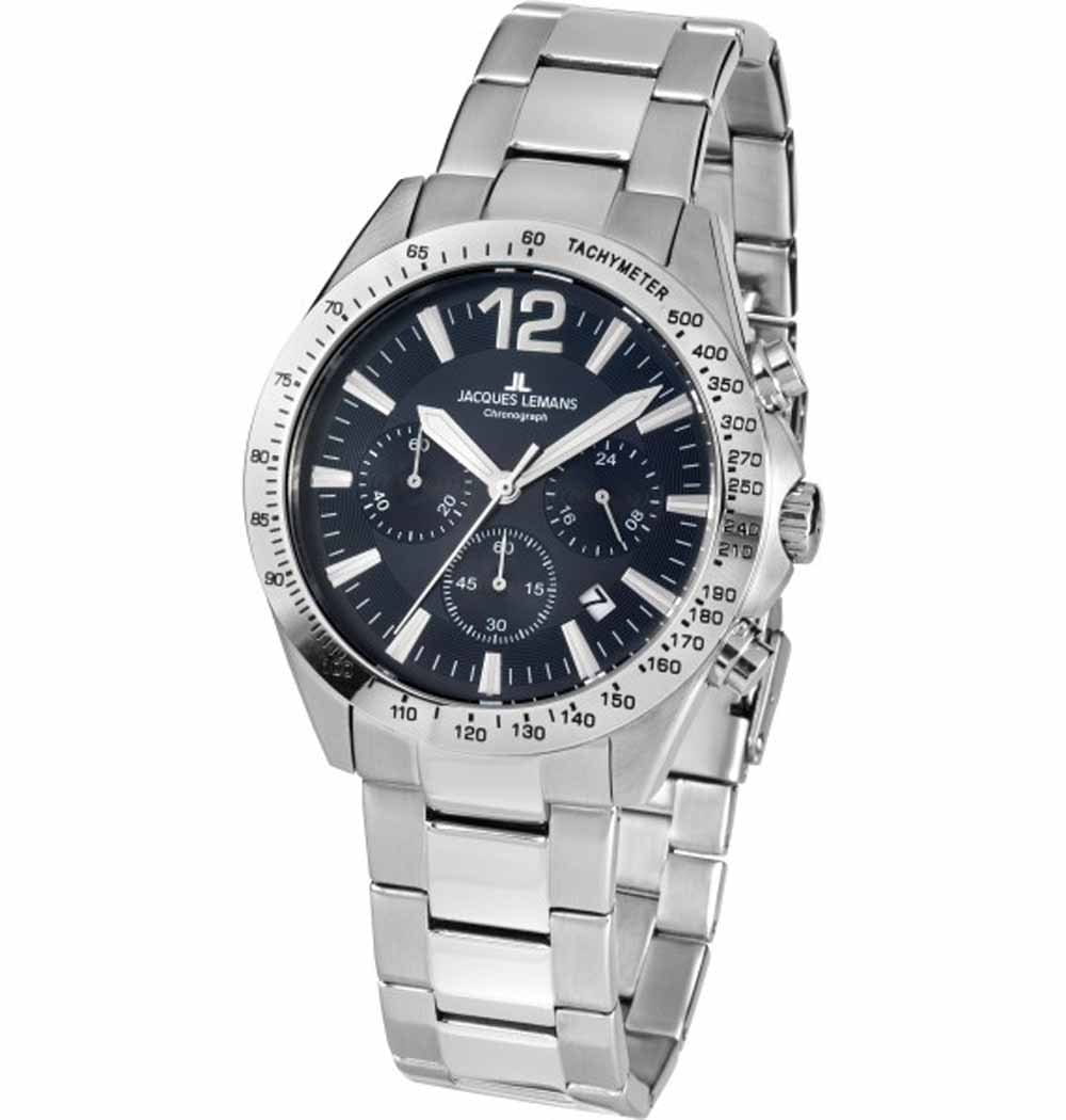Юбилейная коллекция от Jacques Lemans - спортивный хронограф. Часы выполнены в спортивном стиле не смотря на это, подойдут к любому повседневному гардеробу. Кварцевый механизм заключен в круглый корпус из высокопрочной стали. Синий циферблат, стальные стрелки. Часы удерживаются на руке ремешком из натуральной кожи. Водонепроницаемость часов до 100 метров.