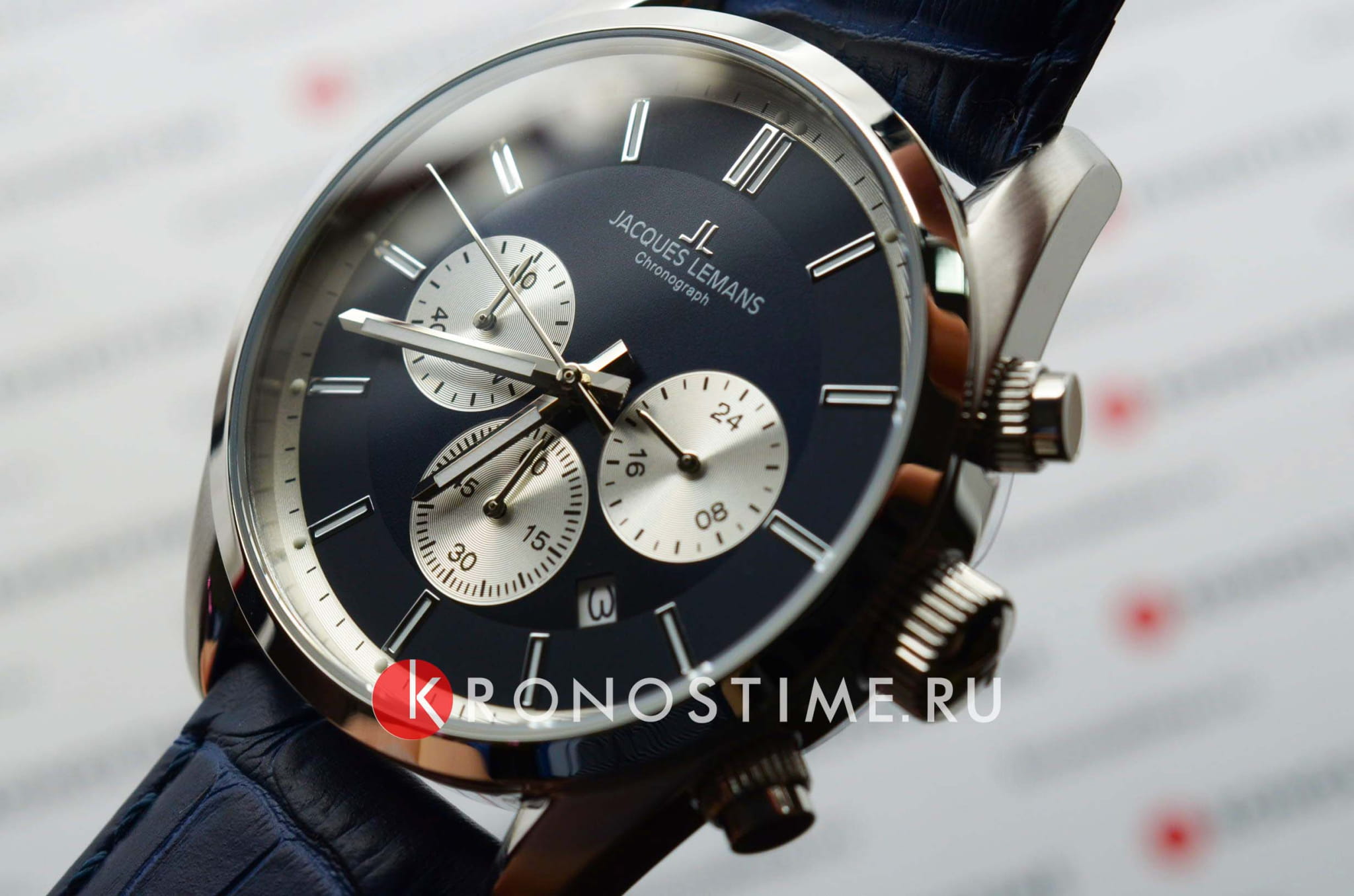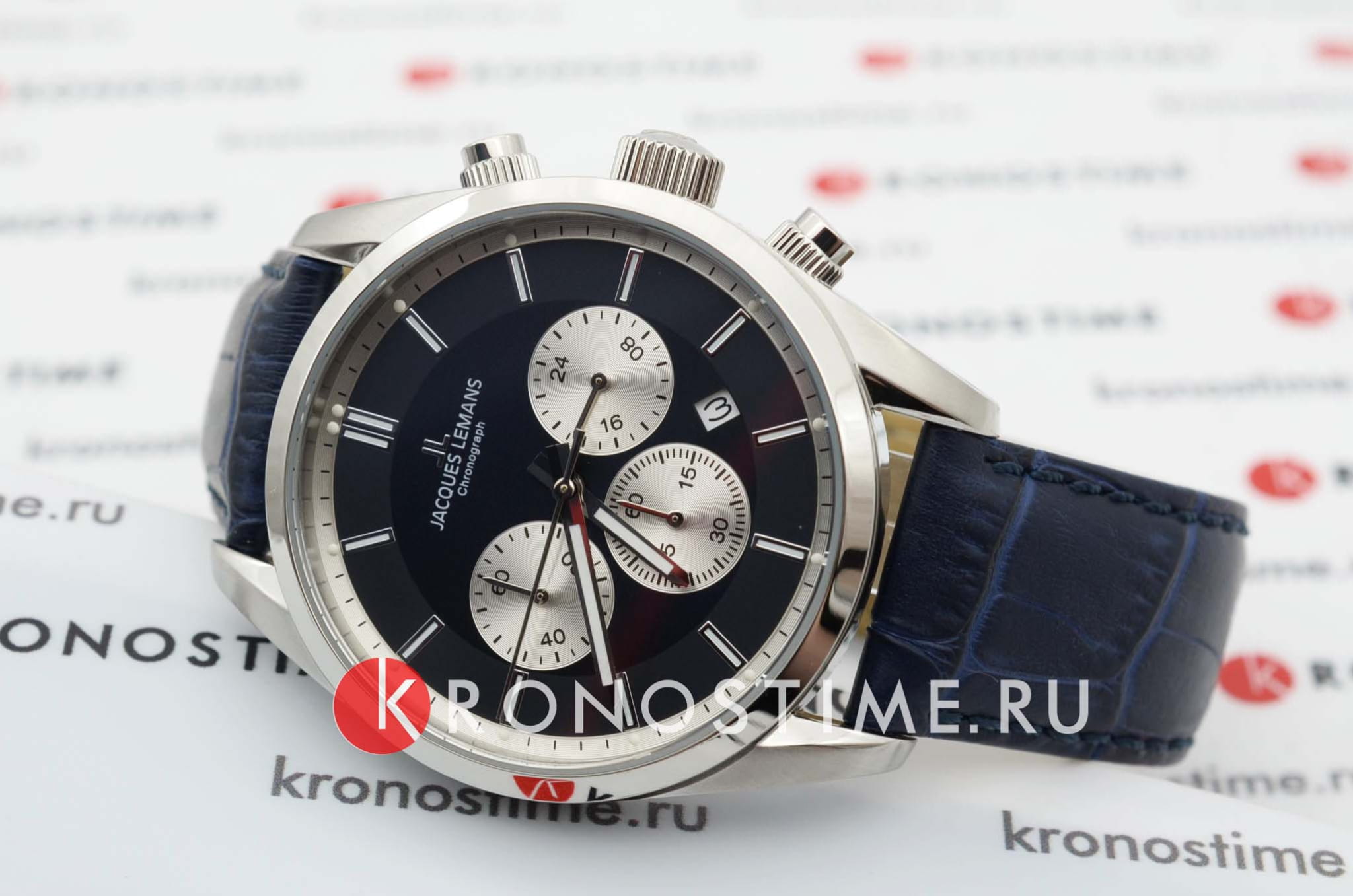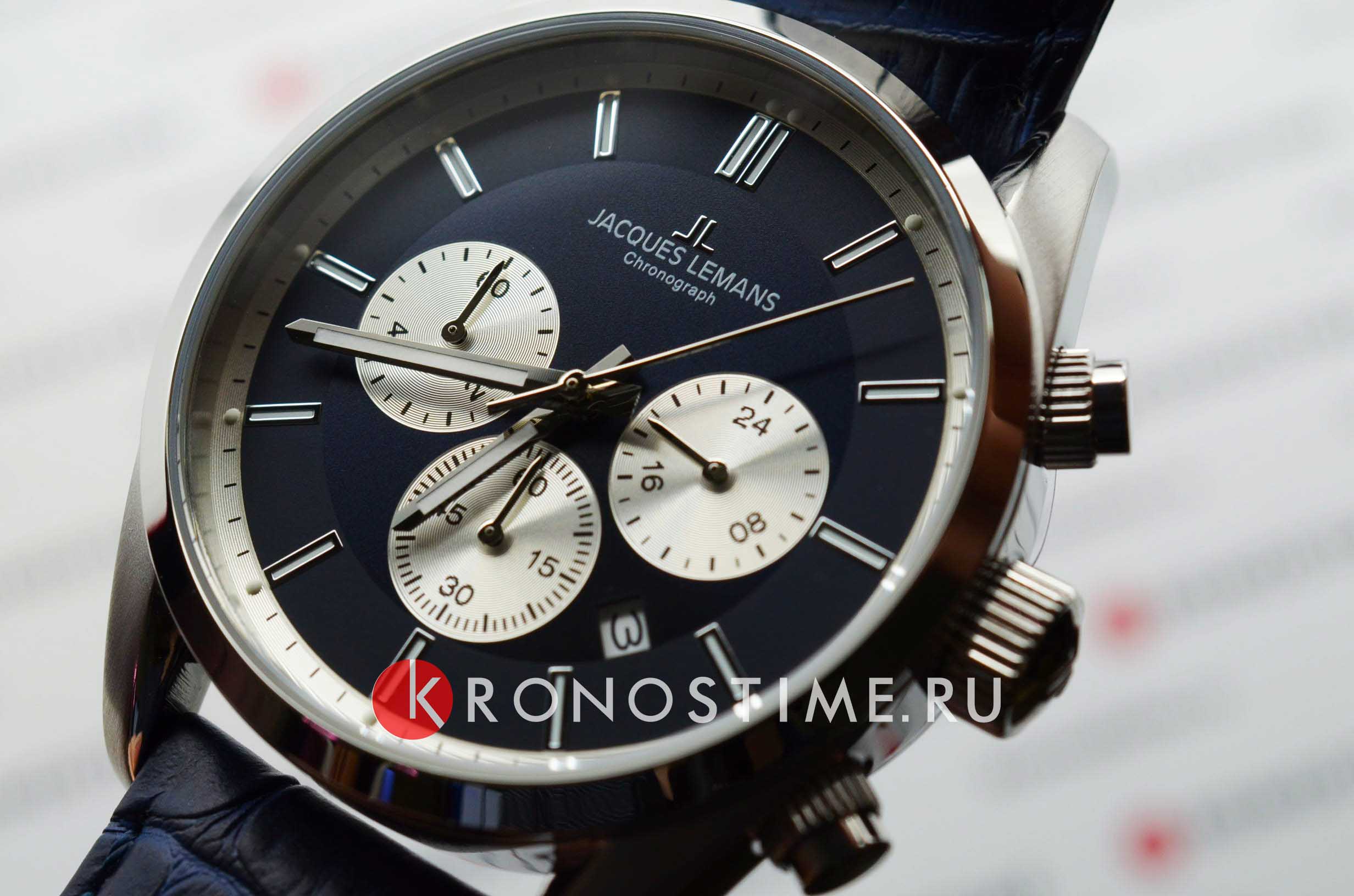 Наручные часы-хронографХронографФункция позволяет измерять отрезки времени с особой точностью: часы, минуты, секунды. Верным признаком хронографа является наличие на циферблате 3 дополнительных окошек-счётчиков. Jacques Lemans с секундомеромСекундомерСекундоме́р — прибор, способный измерять интервалы времени с точностью до долей секунды., 12-ти и 24-х часовым форматом времени, призваны ставить на первое место индивидуальный стиль владельца, классическая элегантность придётся по вкусу каждому.