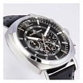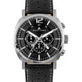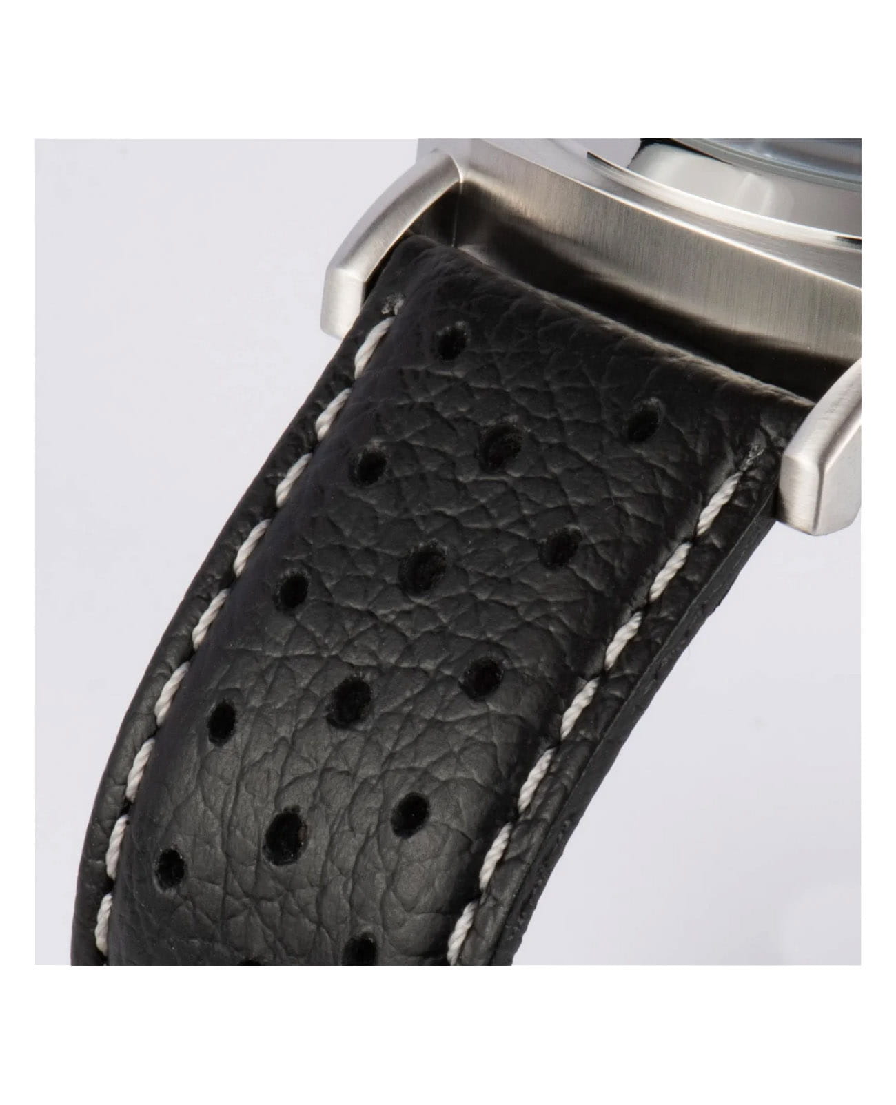 Водозащита до 10 ATM (100 метров) делает часы подходящими для плавания и других водных активностей. Ремешок из натуральной кожи чёрного цвета с перфорацией и контрастной прошивкой оснащён классической застёжкой.