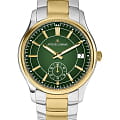 Кварцевые часы серии 1-2197 отличаются удобной индикацией секунд: для этого используется вынесенная на 6 часов стрелка и хорошо читаемые арабские цифры. Для определения часов и минут на зеленом циферблате расположены стрелки с люминесцентным покрытиемЛюминесцентное покрытиеПозволяет считывать показания времени в темноте. Производители наносят на стрелки, часовые индексы, безель или поверхность циферблата светонакопительный состав, дающий холодное свечение. и крупные накладные риски с полировкой. Окошко даты вынесено на 3 часа.
