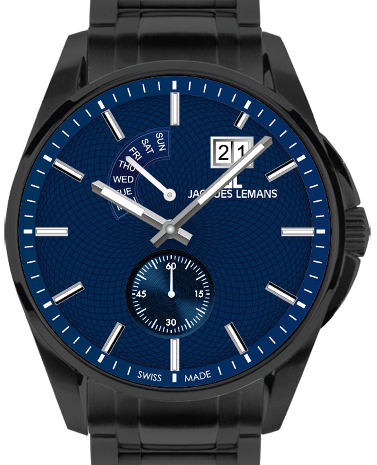 Мужские часы Jacques Lemans 1-2199T – лаконичная красота и изысканная элегантность. Оригинальная модель с классическим оформлением станет превосходным завершением образа, наделив его индивидуальным характером. Корпус выполнен из нержавеющей стали с PVD-покрытиемPVDУльтратонкое покрытие наносится в технике вакуумного напыления, сочетает в себе нитрид титана особой прочности со слоем золота или оксида хрома. Несёт в себе декоративную или защитную функцию. черного цвета, диаметром 44 мм, что обеспечивает долговечность и утончённый внешний вид. Минеральное стеклоМинеральное стеклоМинеральное стекло представляет собой искусственно выращенный минерал кварца. Такое стекло отличается особой устойчивостью к повреждениям и царапинам. Уступает по некоторым качествам сапфировому стеклу. с сапфировым напылением защищает циферблат от царапин. Окошко даты находится в положении 1 час. Широкое окошко дня недели в положении 11-12 часов позволяет показывать название дня недели. Стальной браслет с PVD-покрытиемPVDУльтратонкое покрытие наносится в технике вакуумного напыления, сочетает в себе нитрид титана особой прочности со слоем золота или оксида хрома. Несёт в себе декоративную или защитную функцию. на раскладной застёжкеРаскладная застёжкаТакой тип застёжки используется только на браслетах из металла. Она никогда не раскрывается полностью, происходит разделение на 2 и более частей. Раскладывающая застёжка снизит вероятность потери часов к минимуму. обеспечивает комфортное ношение. Водозащита 100 метров позволит плавать, нырять и заниматься другими водными видами спорта. Стрелки и метки с люминесцентным покрытиемЛюминесцентное покрытиеПозволяет считывать показания времени в темноте. Производители наносят на стрелки, часовые индексы, безель или поверхность циферблата светонакопительный состав, дающий холодное свечение. позволяющие легко определять время даже в темноте. Это аксессуар для мужчины, который ценит классический стиль и функциональность.