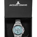 Мужские кварцевые часы-хронографХронографФункция позволяет измерять отрезки времени с особой точностью: часы, минуты, секунды. Верным признаком хронографа является наличие на циферблате 3 дополнительных окошек-счётчиков. с секундомеромСекундомерСекундоме́р — прибор, способный измерять интервалы времени с точностью до долей секунды. Jacques Lemans 1-2206K– лаконичная красота и изысканная элегантность. Оригинальная модель с классическим оформлением станет превосходным завершением образа, наделив его индивидуальным характером. Корпус выполнен из нержавеющей стали серебристого цвета, диаметром 44 мм, что обеспечивает долговечность и утончённый внешний вид. Минеральное стеклоМинеральное стеклоМинеральное стекло представляет собой искусственно выращенный минерал кварца. Такое стекло отличается особой устойчивостью к повреждениям и царапинам. Уступает по некоторым качествам сапфировому стеклу. повышенной прочности Crystex защищает циферблат от царапин. Поворотный безельБезельВнешний ободок, закрепляющий стекло. В спортивных часах так называется поворотное кольцо с делениями на циферблате, выполняет роль таймера – замеряет отрезки времени на шкале. Неподвижный безель – элемент декора. Однонаправленно вращающийся безель на дайверских часах позволяет фиксировать моменты погружения и выныривания на поверхность. с PVD-покрытиемPVDУльтратонкое покрытие наносится в технике вакуумного напыления, сочетает в себе нитрид титана особой прочности со слоем золота или оксида хрома. Несёт в себе декоративную или защитную функцию.. Стальной браслет на раскладной застёжке с фиксаторомРаскладная застёжкаТакой тип застёжки используется только на браслетах из металла. Она никогда не раскрывается полностью, происходит разделение на 2 и более частей. Раскладывающая застёжка снизит вероятность потери часов к минимуму. обеспечивает комфортное ношение Водозащита 200 метров позволит плавать, нырять и заниматься другими водными видами спорта. Стрелки и метки с люминесцентным покрытиемЛюминесцентное покрытиеПозволяет считывать показания времени в темноте. Производители наносят на стрелки, часовые индексы, безель или поверхность циферблата светонакопительный состав, дающий холодное свечение. позволяющие легко определять время даже в темноте. 12-ти и 24-х часовой формат времени. Окошко даты находится в положении между 4 и 5 часами. Рифленая заводная головка с защитой. Это аксессуар для мужчины, который ценит классический стиль и функциональность.