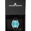 Мужские часы Jacques Lemans Derby 50-3S с минеральным стекломМинеральное стеклоМинеральное стекло представляет собой искусственно выращенный минерал кварца. Такое стекло отличается особой устойчивостью к повреждениям и царапинам. Уступает по некоторым качествам сапфировому стеклу., кварцевый механизм с высокой точностью. Корпус часов из нержавеющей стали. Стрелки с люминесцентным покрытиемЛюминесцентное покрытиеПозволяет считывать показания времени в темноте. Производители наносят на стрелки, часовые индексы, безель или поверхность циферблата светонакопительный состав, дающий холодное свечение.. Окошко даты в положении 3 часа. Класс водозащиты: 50 метров, позволит защитить корпус от случайных брызг или капель дождя. Кожаный ремешок на стандартной застежке.