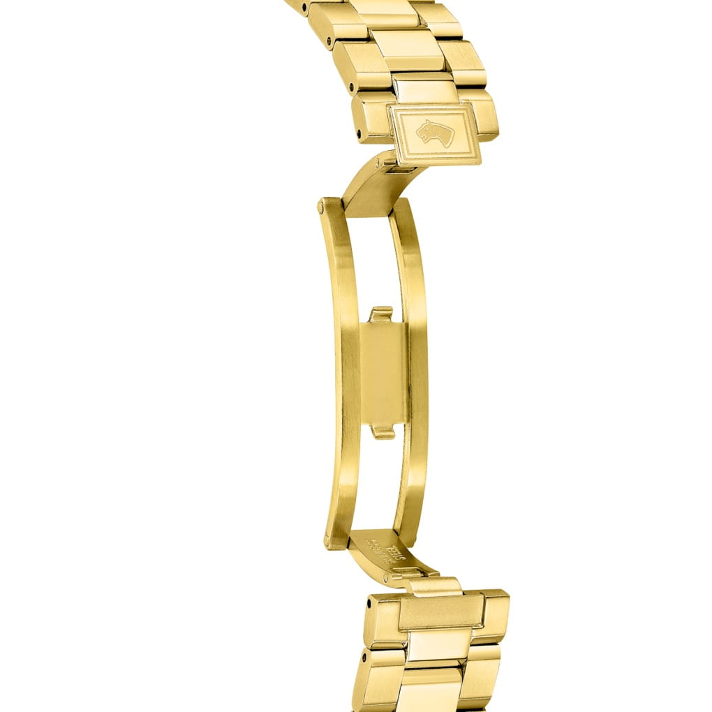 Женские швейцарские часы Jaguar ESSENTIA J1047/1 — это стильное сочетание элегантности и современного дизайна. Корпус из нержавеющей стали с PVD-покрытиемPVDУльтратонкое покрытие наносится в технике вакуумного напыления, сочетает в себе нитрид титана особой прочности со слоем золота или оксида хрома. Несёт в себе декоративную или защитную функцию. золотистого цвета, диаметром 29 мм идеально сбалансирован и элегантен. Сапфировое стеклоСапфировое стеклоПрочный и надёжный материал из кристалла сапфира синтетического происхождения, характеризующийся особой твёрдостью и устойчивостью к царапинам и повреждениям. с антибликовым покрытием защищает циферблат от царапин и обеспечивает отличную читаемость при любом освещении. Стальной браслет с PVD-покрытиемPVDУльтратонкое покрытие наносится в технике вакуумного напыления, сочетает в себе нитрид титана особой прочности со слоем золота или оксида хрома. Несёт в себе декоративную или защитную функцию. на застёжке-бабочкеЗастёжка "бабочка"Такой вид застёжки дополняется предохранителями, помогающими избежать случайного раскрытия браслета. Обладают изящным исполнением. идеально дополняют дизайн часов, обеспечивая комфортное ношение. Часы обладают впечатляющей водонепроницаемостью до 5 бар (50 метров), что делает их идеальными для повседневной носки. Метки виде римских цифр и декорированных цирконов. Тщательно продуманный циферблат и изысканные детали делают эти часы незаменимым аксессуаром для любого случая, от официальных мероприятий до повседневного использования.