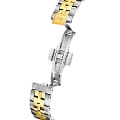 Женские швейцарские часы Jaguar Automatic Open Heart J995/2, механизм — автоподзавод. В часах с автоподзаводом заводная головка практически не используется, что исключает истирание ее материала и материала корпуса. Сапфировое стеклоСапфировое стеклоПрочный и надёжный материал из кристалла сапфира синтетического происхождения, характеризующийся особой твёрдостью и устойчивостью к царапинам и повреждениям. устойчивое к мелким механическим повреждениям. Корпус часов изготовлен из нержавеющей стали. Класс водозащиты: 50 метров, позволит защитить корпус от случайных брызг или капель дождя. Стальной браслет с частичным PVD-покрытиемPVDУльтратонкое покрытие наносится в технике вакуумного напыления, сочетает в себе нитрид титана особой прочности со слоем золота или оксида хрома. Несёт в себе декоративную или защитную функцию. на застёжке-бабочке с кнопкамиЗастёжка "бабочка"Такой вид застёжки дополняется предохранителями, помогающими избежать случайного раскрытия браслета. Обладают изящным исполнением. . Циферблат украшен кристаллами в роли часовых индексов, крупная апертура в виде сердца, открывающая обзор на балансовое колесо механизма. БезельБезельВнешний ободок, закрепляющий стекло. В спортивных часах так называется поворотное кольцо с делениями на циферблате, выполняет роль таймера – замеряет отрезки времени на шкале. Неподвижный безель – элемент декора. Однонаправленно вращающийся безель на дайверских часах позволяет фиксировать моменты погружения и выныривания на поверхность. с PVD-покрытиемPVDУльтратонкое покрытие наносится в технике вакуумного напыления, сочетает в себе нитрид титана особой прочности со слоем золота или оксида хрома. Несёт в себе декоративную или защитную функцию..