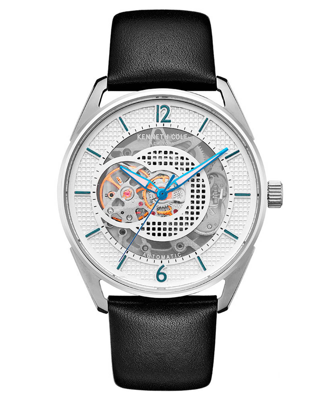 Мужские автоматические часы Kenneth Cole из коллекции Automatic — это стильный аксессуар для современного мужчины, ценящего моду и индивидуальность. Корпус диаметром 42 мм выполнен из нержавеющей стали 316L. Циферблат частично скелетонизирован, что позволяет наблюдать за работой автоматического механизма, придавая часам уникальный характер. Циферблат защищён минеральным стекломМинеральное стеклоМинеральное стекло представляет собой искусственно выращенный минерал кварца. Такое стекло отличается особой устойчивостью к повреждениям и царапинам. Уступает по некоторым качествам сапфировому стеклу.. Индексы — арабские цифры и метки. Стрелки оснащены люминесцентным покрытиемЛюминесцентное покрытиеПозволяет считывать показания времени в темноте. Производители наносят на стрелки, часовые индексы, безель или поверхность циферблата светонакопительный состав, дающий холодное свечение., обеспечивающим хорошую читаемость в темноте. Рифлёная заводная головка добавляет детали дизайну. Часы оснащены кожаным ремешком с классической пряжкой. Водонепроницаемость 30 м позволяет использовать часы в повседневных условиях, защищая от случайных брызг и капель дождя.