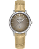 Женские наручные часы Космос Созвездие K 601.12.32 — это сочетание традиций часового искусства 60-70-х годов и футуристического дизайна, вдохновленного космическими исследованиями. Они не только служат напоминанием о прошлом, но и побуждают задуматься о будущем, позволяя наслаждаться качеством и смыслом, вложенными в каждую деталь. Полированный корпус часов выполнен в виде силуэта летающей тарелки благодаря выпуклым формам стекла и нижней части корпуса. Стальные ушки, которые напоминают опоры летающей тарелки, завершает общий образ. На задней крышке часов выгравирован фантазийный сюжет – космическая станция будущего. Название коллекции Созвездие – идеально отражает разнообразие моделей с яркими, но тщательно подобранными цветами. Бежевый циферблат выполнен в ретро стиле, с выгнутыми краями, что требует применения сложной производственной технологии. Такой дизайн был характерен для часов прошлых лет. Кончик секундной стрелки также изогнут, следуя форме циферблата. Выпуклый градиентный циферблат украшен шлифовкой в стиле солнечных лучей и ручными индексами, которые фиксируются на двух штифтах. Окошко даты обрамлено стальной рамкой, что добавляет часам утонченности и элегантности. Часовая и минутная стрелки, а также круг по краю циферблата, напоминающий ореол Земли, с  люминесцентным покрытиемЛюминесцентное покрытиеПозволяет считывать показания времени в темноте. Производители наносят на стрелки, часовые индексы, безель или поверхность циферблата светонакопительный состав, дающий холодное свечение., которое светится в темноте, создавая завораживающий эффект. Форма минерального стеклаМинеральное стеклоМинеральное стекло представляет собой искусственно выращенный минерал кварца. Такое стекло отличается особой устойчивостью к повреждениям и царапинам. Уступает по некоторым качествам сапфировому стеклу. тщательно продумана: оно выгнуто как снаружи, так и изнутри. Такая конструкция исключает искажения изображения на циферблате, в отличие от обычного стекла. Ремешок модели сделан из натуральной кожи бежевого цвета. Заводная головка, застежка и ремешок украшены фирменным логотипом.