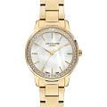 Женские часы Lee Cooper LC07229.120 — это стильное сочетание элегантности и современного дизайна. Круглый корпус диаметром 34 мм выполнен из суперметалла в золотом цвете с IP-покрытиемIP-покрытиеМетод ионного напыления. Демонстрирует повышенную устойчивость к истиранию, окислению и химическим веществам. Под воздействием высокого давления и температуры около 1500°C молекулы металла надёжно соединяются с частицами корпуса часов., а безельБезельВнешний ободок, закрепляющий стекло. В спортивных часах так называется поворотное кольцо с делениями на циферблате, выполняет роль таймера – замеряет отрезки времени на шкале. Неподвижный безель – элемент декора. Однонаправленно вращающийся безель на дайверских часах позволяет фиксировать моменты погружения и выныривания на поверхность. украшен кристаллами, придающими модели особый блеск. Перламутровый циферблат защищен минеральным стекломМинеральное стеклоМинеральное стекло представляет собой искусственно выращенный минерал кварца. Такое стекло отличается особой устойчивостью к повреждениям и царапинам. Уступает по некоторым качествам сапфировому стеклу., обеспечивающим устойчивость к царапинам. Часы оснащены надежным кварцевым механизмом, а металлический браслет с раскладной застёжкойРаскладная застёжкаТакой тип застёжки используется только на браслетах из металла. Она никогда не раскрывается полностью, происходит разделение на 2 и более частей. Раскладывающая застёжка снизит вероятность потери часов к минимуму. гарантирует комфортную посадку на запястье. Водозащита 30 метров защищает модель от случайных брызг и дождя. Lee Cooper — отличный выбор для тех, кто ценит утонченность и качество.