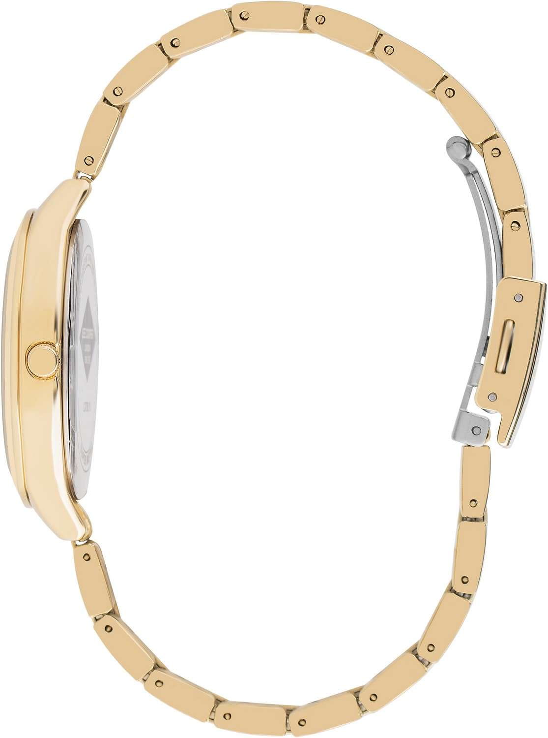 Женские наручные часы Lee Cooper LC07457.130 — это элегантная модель с утончённым дизайном. Корпус диаметром 34 мм выполнен из суперметалла с IP-покрытиемIP-покрытиеМетод ионного напыления. Демонстрирует повышенную устойчивость к истиранию, окислению и химическим веществам. Под воздействием высокого давления и температуры около 1500°C молекулы металла надёжно соединяются с частицами корпуса часов., что придаёт часам изысканный вид. Серебристый циферблат украшен изящными вставками из кристаллов и стрелками, обеспечивая удобное считывание времени. Циферблат защищён минеральным стекломМинеральное стеклоМинеральное стекло представляет собой искусственно выращенный минерал кварца. Такое стекло отличается особой устойчивостью к повреждениям и царапинам. Уступает по некоторым качествам сапфировому стеклу., устойчивым к царапинам. Часы работают на кварцевом механизме, обеспечивая точность хода. Браслет из нержавеющей стали с раскладной застёжкойРаскладная застёжкаТакой тип застёжки используется только на браслетах из металла. Она никогда не раскрывается полностью, происходит разделение на 2 и более частей. Раскладывающая застёжка снизит вероятность потери часов к минимуму. гарантирует комфортное ношение и надёжную фиксацию на запястье. Водозащита 30 метров защищает часы от случайных брызг и дождя, делая их подходящими для повседневного использования.