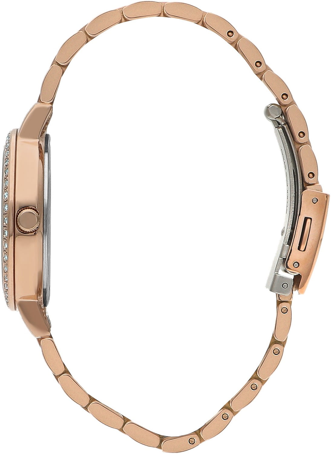 Женские часы Lee Cooper LC07590.490 — это стильное сочетание элегантности и современного дизайна. Круглый корпус диаметром 34 мм выполнен из суперметалла с IP-покрытиемIP-покрытиеМетод ионного напыления. Демонстрирует повышенную устойчивость к истиранию, окислению и химическим веществам. Под воздействием высокого давления и температуры около 1500°C молекулы металла надёжно соединяются с частицами корпуса часов. золотого цвета. Неподвижный безельБезельВнешний ободок, закрепляющий стекло. В спортивных часах так называется поворотное кольцо с делениями на циферблате, выполняет роль таймера – замеряет отрезки времени на шкале. Неподвижный безель – элемент декора. Однонаправленно вращающийся безель на дайверских часах позволяет фиксировать моменты погружения и выныривания на поверхность. инкрустирован цирконами, что придает модели особый блеск. Циферблат с минималистичными метками в виде точек придает часам элегантность и утонченность, делая их идеальным аксессуаром для любой женщины, а минеральное стеклоМинеральное стеклоМинеральное стекло представляет собой искусственно выращенный минерал кварца. Такое стекло отличается особой устойчивостью к повреждениям и царапинам. Уступает по некоторым качествам сапфировому стеклу., обеспечивает устойчивость к царапинам. Центральные часовая, минутная и секундная стрелки. Часы оснащены надежным кварцевым механизмом, источник питания - батарейка. Металлический браслет с IP-покрытиемIP-покрытиеМетод ионного напыления. Демонстрирует повышенную устойчивость к истиранию, окислению и химическим веществам. Под воздействием высокого давления и температуры около 1500°C молекулы металла надёжно соединяются с частицами корпуса часов. на раскладной застёжкеРаскладная застёжкаТакой тип застёжки используется только на браслетах из металла. Она никогда не раскрывается полностью, происходит разделение на 2 и более частей. Раскладывающая застёжка снизит вероятность потери часов к минимуму. гарантирует комфортную посадку на запястье. Водозащита 30 метров защищает модель от случайных брызг и дождя. Lee Cooper — отличный выбор для тех, кто ценит утонченность и качество.