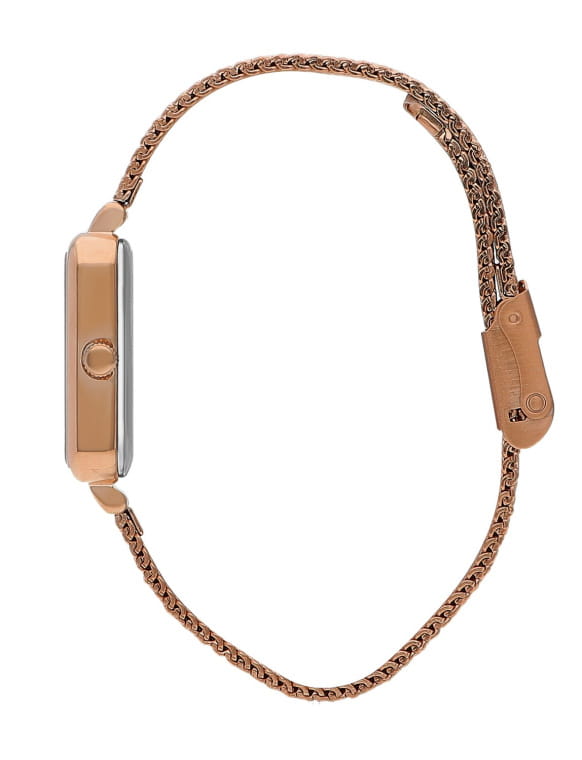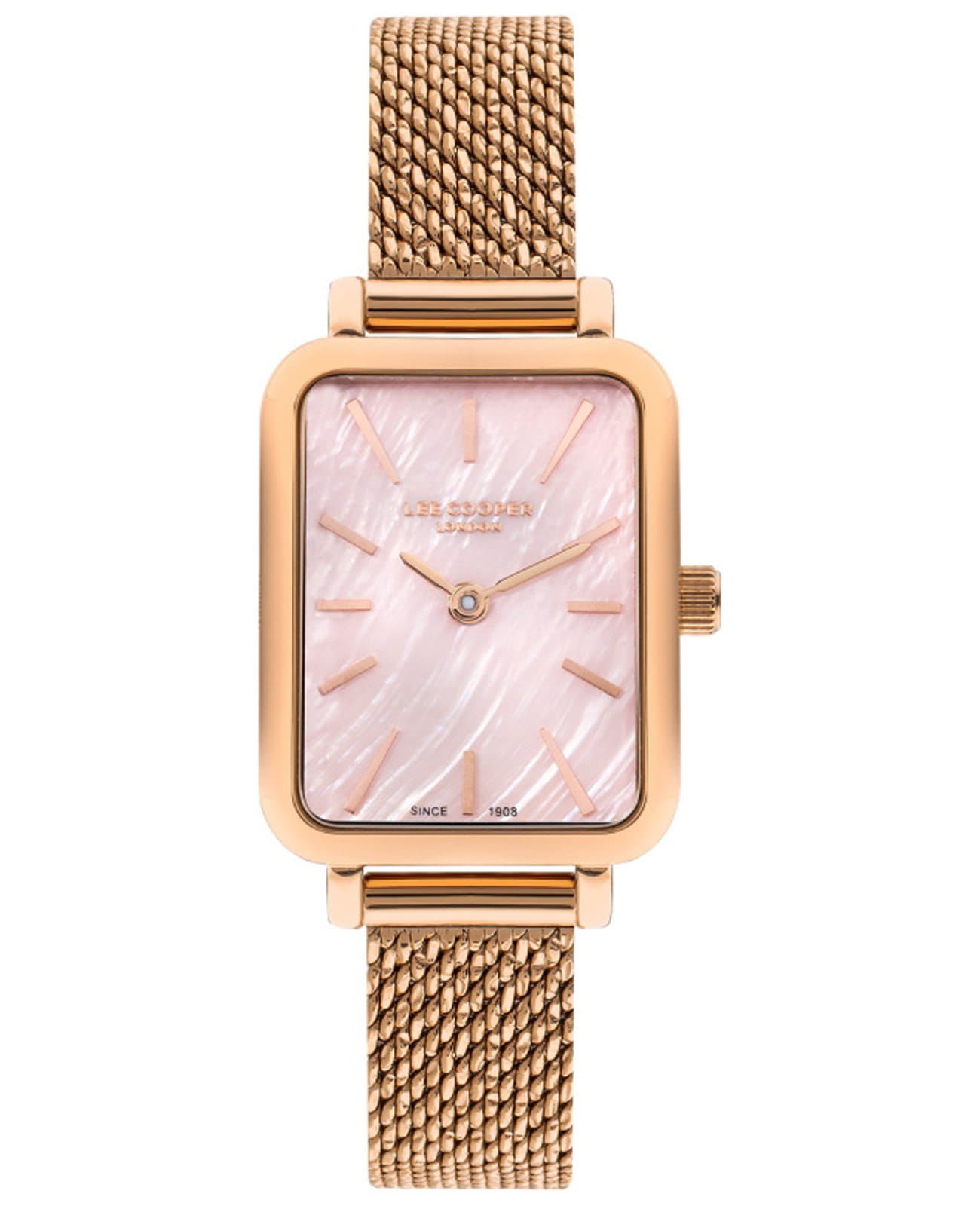 Женские наручные часы Lee Cooper LC07815.410 представляют собой элегантную модель, сочетающую стильный дизайн и практичность. Корпус часов выполнен из суперметалла с IP-покрытиемIP-покрытиеМетод ионного напыления. Демонстрирует повышенную устойчивость к истиранию, окислению и химическим веществам. Под воздействием высокого давления и температуры около 1500°C молекулы металла надёжно соединяются с частицами корпуса часов. цвета розового золота, что придает им изысканный и благородный вид. Циферблат розового цвета украшен индексами и стрелками с IP-покрытием розового золота, гармонично дополняя классический дизайн модели. Форма корпуса прямоугольная с размерами 20,5 x 26 мм, что делает часы компактными и удобными для повседневной носки. Для защиты циферблата используется минеральное стеклоМинеральное стеклоМинеральное стекло представляет собой искусственно выращенный минерал кварца. Такое стекло отличается особой устойчивостью к повреждениям и царапинам. Уступает по некоторым качествам сапфировому стеклу., устойчивое к царапинам. Часы оснащены точным кварцевым механизмом японского производства, обеспечивающим надежность и высокую точность хода. Браслет изготовлен из нержавеющей стали с золотистым IP-покрытием, создавая нежный и женственный образ. Застежка выполнена в виде раскладного замкаРаскладной замокДанный вариант застежки используется только на часах с металлическим браслетом. Отличительная особенность такого крепления в том, что длина браслета становится универсальной и вы можете самостоятельно отрегулировать нужный вам размер – застежка просто двигается по браслету часов., гарантирующего комфортное и безопасное ношение. Модель обладает водозащитой до 30 метров (3 ATM), что позволяет использовать часы в повседневной жизни, включая контакт с водой при мытье рук или дожде. Эти часы станут идеальным выбором для женщин, ценящих стиль, качество и практичность.