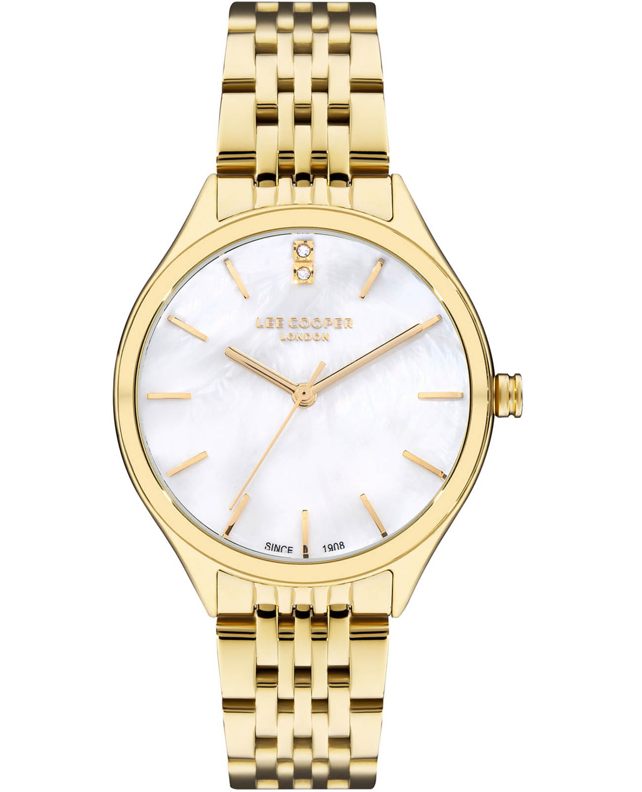 Женские часы Lee Cooper LC07821.120 выполнены в классическом стиле и сочетают строгий дизайн с надёжным механизмом. Модель оснащена кварцевым механизмом, обеспечивающим точность хода и минимальное обслуживание. Корпус круглой формы имеет размер 36 мм, изготовлен из суперметалла с IP-покрытиемIP-покрытиеМетод ионного напыления. Демонстрирует повышенную устойчивость к истиранию, окислению и химическим веществам. Под воздействием высокого давления и температуры около 1500°C молекулы металла надёжно соединяются с частицами корпуса часов., гарантирует комфорт при ношении. Перламутровый циферблат дополнен штрихами для чёткого отсчёта времени. Защиту циферблата обеспечивает минеральное стеклоМинеральное стеклоМинеральное стекло представляет собой искусственно выращенный минерал кварца. Такое стекло отличается особой устойчивостью к повреждениям и царапинам. Уступает по некоторым качествам сапфировому стеклу., устойчивое к мелким механическим повреждениям. Стальной браслет с IP-покрытиемIP-покрытиеМетод ионного напыления. Демонстрирует повышенную устойчивость к истиранию, окислению и химическим веществам. Под воздействием высокого давления и температуры около 1500°C молекулы металла надёжно соединяются с частицами корпуса часов. на раскладной застёжкеРаскладная застёжкаТакой тип застёжки используется только на браслетах из металла. Она никогда не раскрывается полностью, происходит разделение на 2 и более частей. Раскладывающая застёжка снизит вероятность потери часов к минимуму. гарантирует удобную посадку и надёжную фиксацию на запястье. Водозащита 30WR позволяет использовать часы в повседневных условиях без риска повреждения от случайных брызг воды. Это сочетание классического дизайна, прочности материалов и качества исполнения для уверенных в себе женщин.