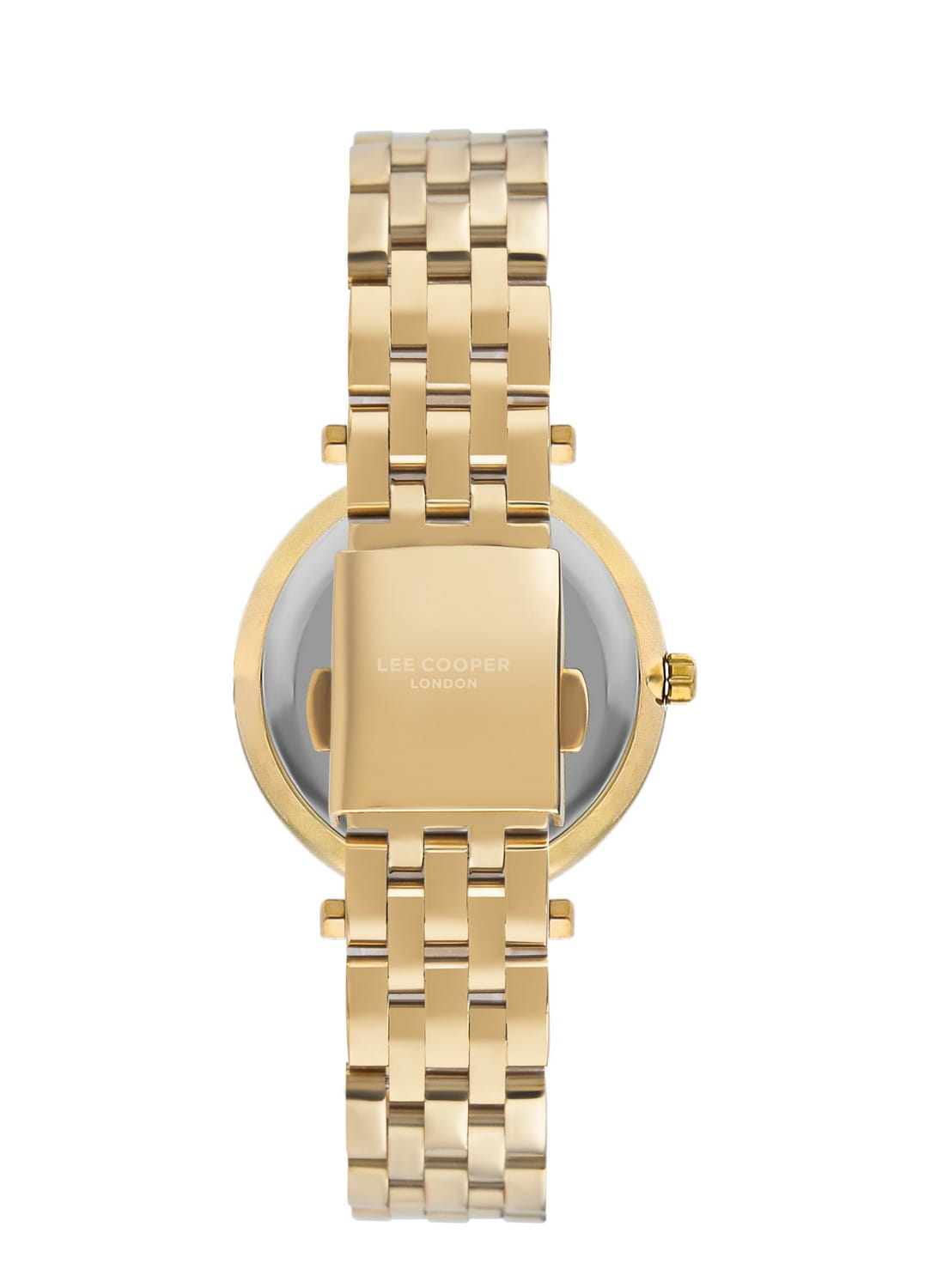 Женские часы Lee Cooper LC07864.160 — это стильное сочетание элегантности и современного дизайна. Круглый корпус диаметром 34 мм выполнен из суперметалла с IP-покрытиемIP-покрытиеМетод ионного напыления. Демонстрирует повышенную устойчивость к истиранию, окислению и химическим веществам. Под воздействием высокого давления и температуры около 1500°C молекулы металла надёжно соединяются с частицами корпуса часов., а неподвижный безельБезельВнешний ободок, закрепляющий стекло. В спортивных часах так называется поворотное кольцо с делениями на циферблате, выполняет роль таймера – замеряет отрезки времени на шкале. Неподвижный безель – элемент декора. Однонаправленно вращающийся безель на дайверских часах позволяет фиксировать моменты погружения и выныривания на поверхность. инкрустирован 140 фианитами, придающими модели особый блеск. Изящный циферблат защищен минеральным стекломМинеральное стеклоМинеральное стекло представляет собой искусственно выращенный минерал кварца. Такое стекло отличается особой устойчивостью к повреждениям и царапинам. Уступает по некоторым качествам сапфировому стеклу., обеспечивающим устойчивость к царапинам. Метки в виде штрихов. Часы оснащены надежным кварцевым механизмом, а стальной браслет с IP-покрытиемIP-покрытиеМетод ионного напыления. Демонстрирует повышенную устойчивость к истиранию, окислению и химическим веществам. Под воздействием высокого давления и температуры около 1500°C молекулы металла надёжно соединяются с частицами корпуса часов. на раскладной застёжкеРаскладная застёжкаТакой тип застёжки используется только на браслетах из металла. Она никогда не раскрывается полностью, происходит разделение на 2 и более частей. Раскладывающая застёжка снизит вероятность потери часов к минимуму. гарантирует комфортную посадку на запястье. Водозащита 30 метров защищает модель от случайных брызг и дождя. Lee Cooper — отличный выбор для тех, кто ценит утонченность и качество.