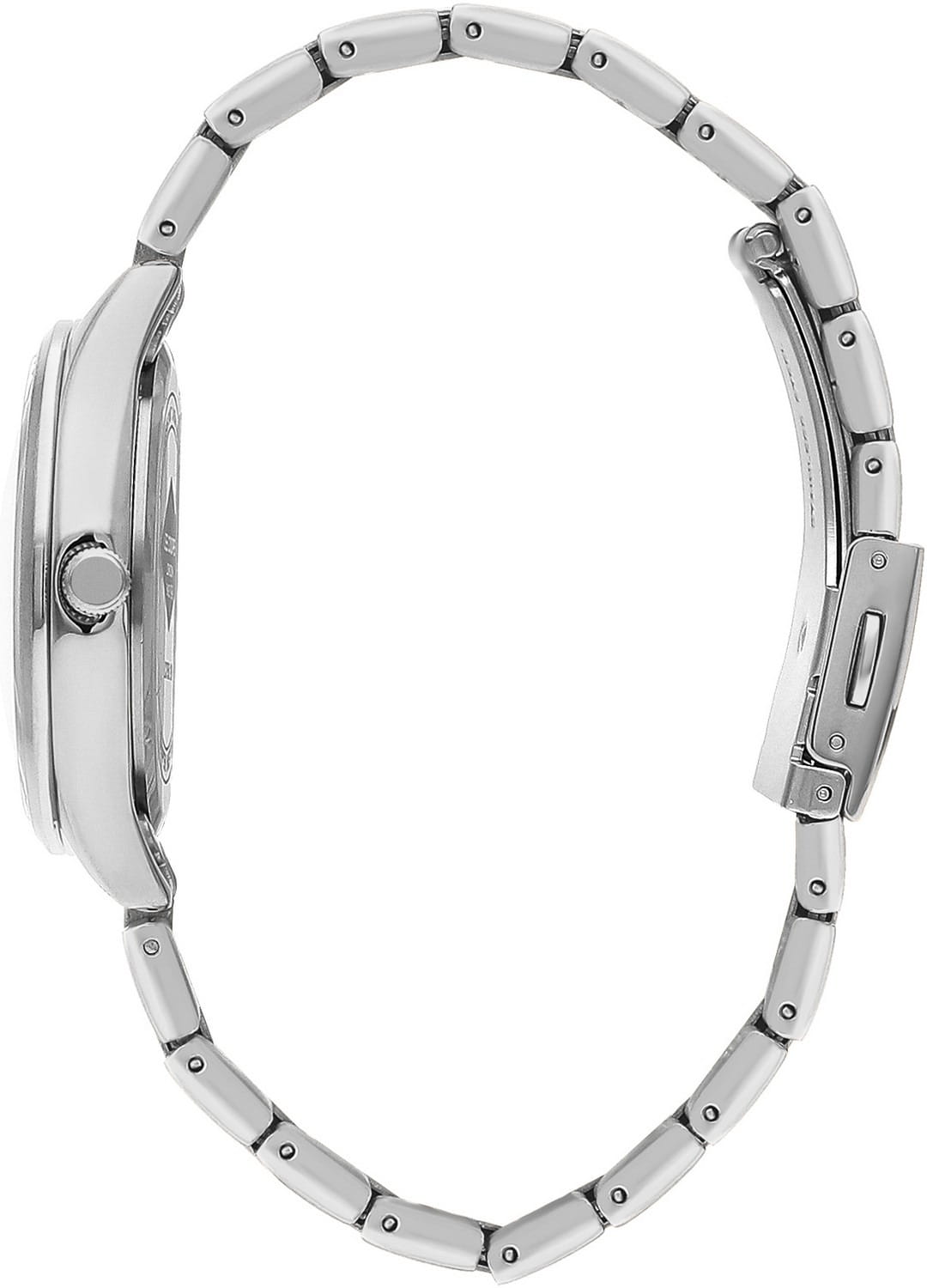 Женские часы Lee Cooper LC07958.270 с изящным корпусом 34 мм, выполненным из суперметалла, сочетают элегантность и надежность. Зеленый циферблат придаёт модели выразительный стиль, а минеральное стеклоМинеральное стеклоМинеральное стекло представляет собой искусственно выращенный минерал кварца. Такое стекло отличается особой устойчивостью к повреждениям и царапинам. Уступает по некоторым качествам сапфировому стеклу. защищает поверхность от царапин. Точный кварцевый механизм гарантирует стабильную и безупречную работу. Водозащита 30 м предохраняет часы от случайных брызг. Стальной браслет с IP-покрытиемIP-покрытиеМетод ионного напыления. Демонстрирует повышенную устойчивость к истиранию, окислению и химическим веществам. Под воздействием высокого давления и температуры около 1500°C молекулы металла надёжно соединяются с частицами корпуса часов. и раскладной застёжкойРаскладная застёжкаТакой тип застёжки используется только на браслетах из металла. Она никогда не раскрывается полностью, происходит разделение на 2 и более частей. Раскладывающая застёжка снизит вероятность потери часов к минимуму. обеспечивает комфортное ношение и надёжную фиксацию на запястье.