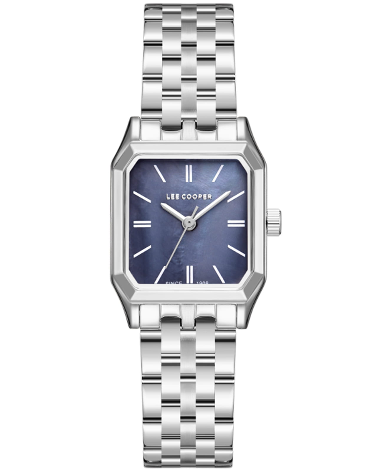 Женские наручные часы Lee Cooper LC08120.350 — это изысканная модель, сочетающая элегантный дизайн и практичность. Корпус выполнен из нержавеющей стали, придавая часам уникальный и утончённый вид. Перламутровый синий циферблат с метками в виде штрихов добавляет свежий и стильный акцент, делая часы привлекательными для различных случаев. Модель оснащена надёжным кварцевым механизмом, обеспечивающим точность и долговечность. Минеральное стеклоМинеральное стеклоМинеральное стекло представляет собой искусственно выращенный минерал кварца. Такое стекло отличается особой устойчивостью к повреждениям и царапинам. Уступает по некоторым качествам сапфировому стеклу. защищает циферблат от повреждений и царапин, сохраняя его презентабельный вид. Водонепроницаемость 50 метров защищает часы от случайных брызг, что делает их подходящими для повседневных ситуаций, таких как мытьё рук или прогулки под лёгким дождём. Раскладная застёжкаРаскладная застёжкаТакой тип застёжки используется только на браслетах из металла. Она никогда не раскрывается полностью, происходит разделение на 2 и более частей. Раскладывающая застёжка снизит вероятность потери часов к минимуму. обеспечивает удобную посадку и надёжность при ношении. В целом, эти часы являются отличным выбором для тех, кто ищет аксессуар, объединяющий классический стиль, уникальное цветовое решение и функциональность. Их гармоничное сочетание серебристых оттенков с элегантным перламутровым циферблатом и качественным механизмом делает их идеальным дополнением к любому гардеробу — от официального до повседневного.