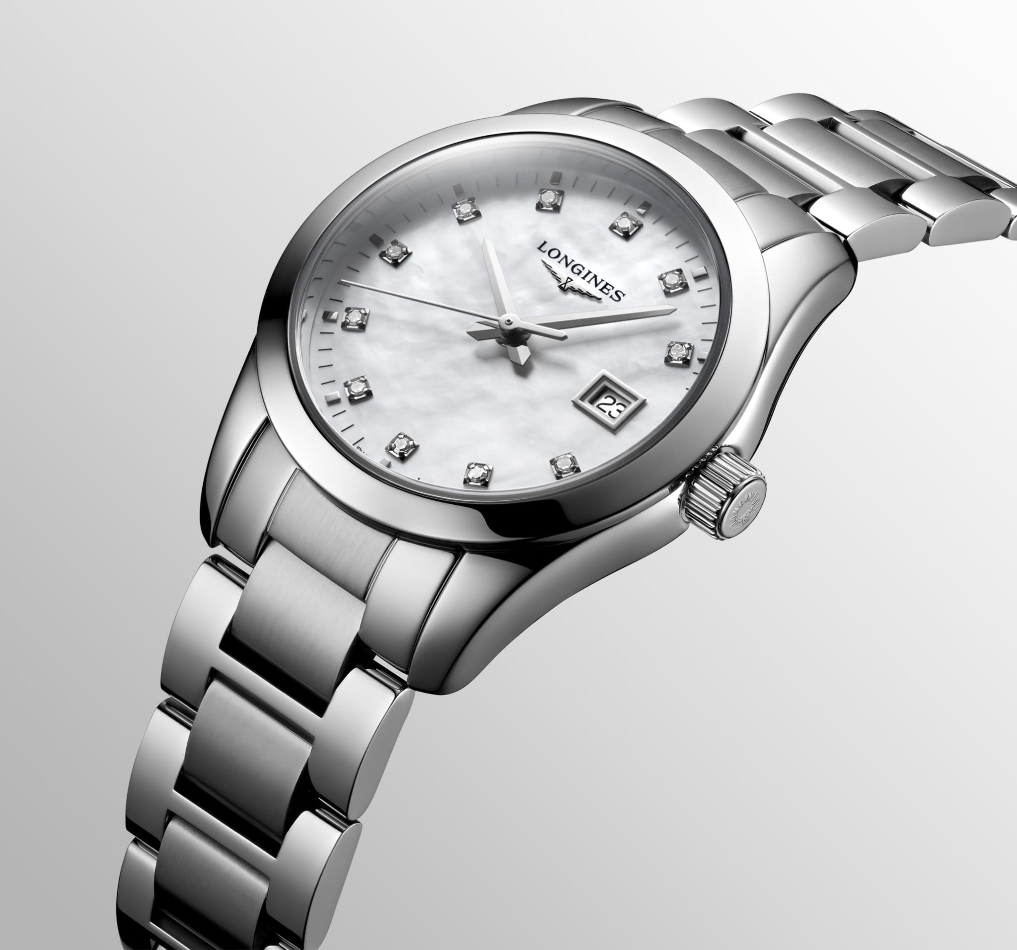 Женские швейцарские часы Longines Conquest Classic L2.286.4.87.6 отражают утончённый вкус владелицы.