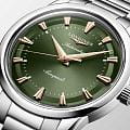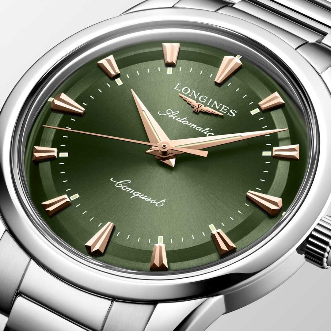 Longines Conquest Heritage L1.650.4.02.6 — это воплощение классической элегантности и швейцарского совершенства, объединяющее в себе богатое наследие марки и современные технологии. Корпус и браслет выполнены из высококачественной нержавеющей стали диаметром 40 мм и украшен оригинальным медальоном из золота 18 карат с изображением рыбы на задней крышке, что подчеркивает исключительность этой модели. Зеленый циферблат с полированной поверхностью, украшенный изящными накладными индексами в виде штрихов, создает благородный акцен. Браслет оснащён двойной раскладной застёжкойРаскладная застёжкаТакой тип застёжки используется только на браслетах из металла. Она никогда не раскрывается полностью, происходит разделение на 2 и более частей. Раскладывающая застёжка снизит вероятность потери часов к минимуму. с системой микрорегулировки, обеспечивая максимальный комфорт при носке. Также на циферблате располагаются полированные стрелки с люминесцентным покрытиемЛюминесцентное покрытиеПозволяет считывать показания времени в темноте. Производители наносят на стрелки, часовые индексы, безель или поверхность циферблата светонакопительный состав, дающий холодное свечение. Swiss Super-LumiNova для отличной читаемости в любое время суток. Механизм с автоподзаводом калибра L888 обеспечивает точность хода и запас хода до 72 часов, а устойчивость к магнитным полям гарантирует стабильную работу даже в насыщенных электромагнитных условиях. Сапфировое стеклоСапфировое стеклоПрочный и надёжный материал из кристалла сапфира синтетического происхождения, характеризующийся особой твёрдостью и устойчивостью к царапинам и повреждениям. с двусторонним многослойным антибликовым покрытием надежно защищает циферблат от царапин и бликов, сохраняя безупречный внешний вид на долгие годы. Часы выдерживают давление до 5 бар (50 метров), что позволяет не снимать их во время мытья рук или прогулок под дождем. Завинчивающаяся заводная головка и продуманная конструкция корпуса подчеркивают высокий уровень исполнения каждой детали.