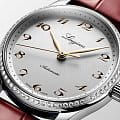 Женские швейцарские механические часы с автоподзаводом Longines Master Collection l2.357.0.70.2. Сапфировое стеклоСапфировое стеклоПрочный и надёжный материал из кристалла сапфира синтетического происхождения, характеризующийся особой твёрдостью и устойчивостью к царапинам и повреждениям. устойчивое к появлению царапин, обладающее высокой прозрачностью. Корпус часов изготовлен из нержавеющей стали. Прозрачная задняя крышка. Класс водозащиты: 30 метров, позволит защитить корпус от случайных брызг или капель дождя. Корпус с 68 бриллиантами группы Top Wesselton IF-VVS общим весом 0.571 карата. Кожаный ремешок с раскладной застёжкойРаскладная застёжкаТакой тип застёжки используется только на браслетах из металла. Она никогда не раскрывается полностью, происходит разделение на 2 и более частей. Раскладывающая застёжка снизит вероятность потери часов к минимуму..