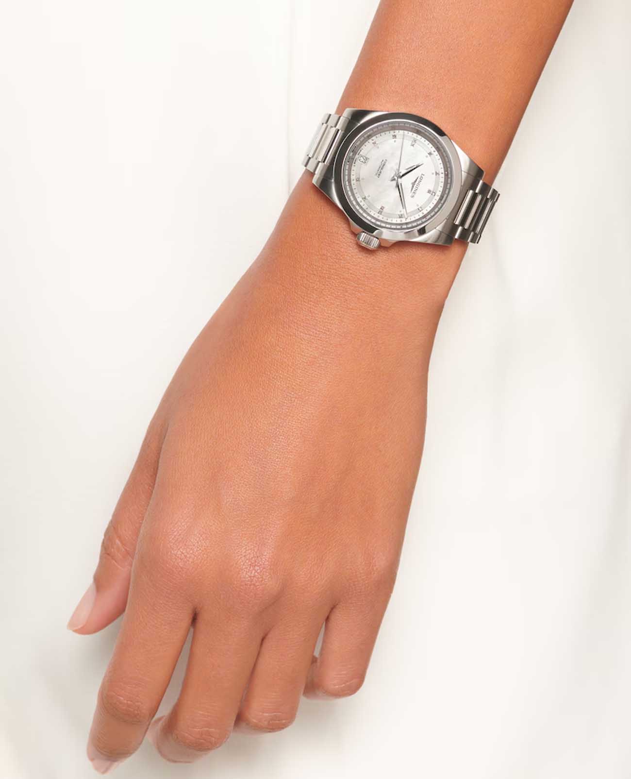 Женские швейцарские механические часы с автоподзаводом Longines Conquest L3.430.4.87.6. Сапфировое стеклоСапфировое стеклоПрочный и надёжный материал из кристалла сапфира синтетического происхождения, характеризующийся особой твёрдостью и устойчивостью к царапинам и повреждениям. устойчивое к появлению царапин, обладающее высокой прозрачностью. Корпус часов изготовлен из нержавеющей стали. Стрелки с люминесцентным покрытиемЛюминесцентное покрытиеПозволяет считывать показания времени в темноте. Производители наносят на стрелки, часовые индексы, безель или поверхность циферблата светонакопительный состав, дающий холодное свечение.. Циферблат украшают 12 бриллиантов. Окошко даты в положении 6 часов. Класс водозащиты: 100 метров, позволит плавать, нырять и заниматься другими водными видами спорта. Стальной браслет на раскладной застёжкеРаскладная застёжкаТакой тип застёжки используется только на браслетах из металла. Она никогда не раскрывается полностью, происходит разделение на 2 и более частей. Раскладывающая застёжка снизит вероятность потери часов к минимуму..