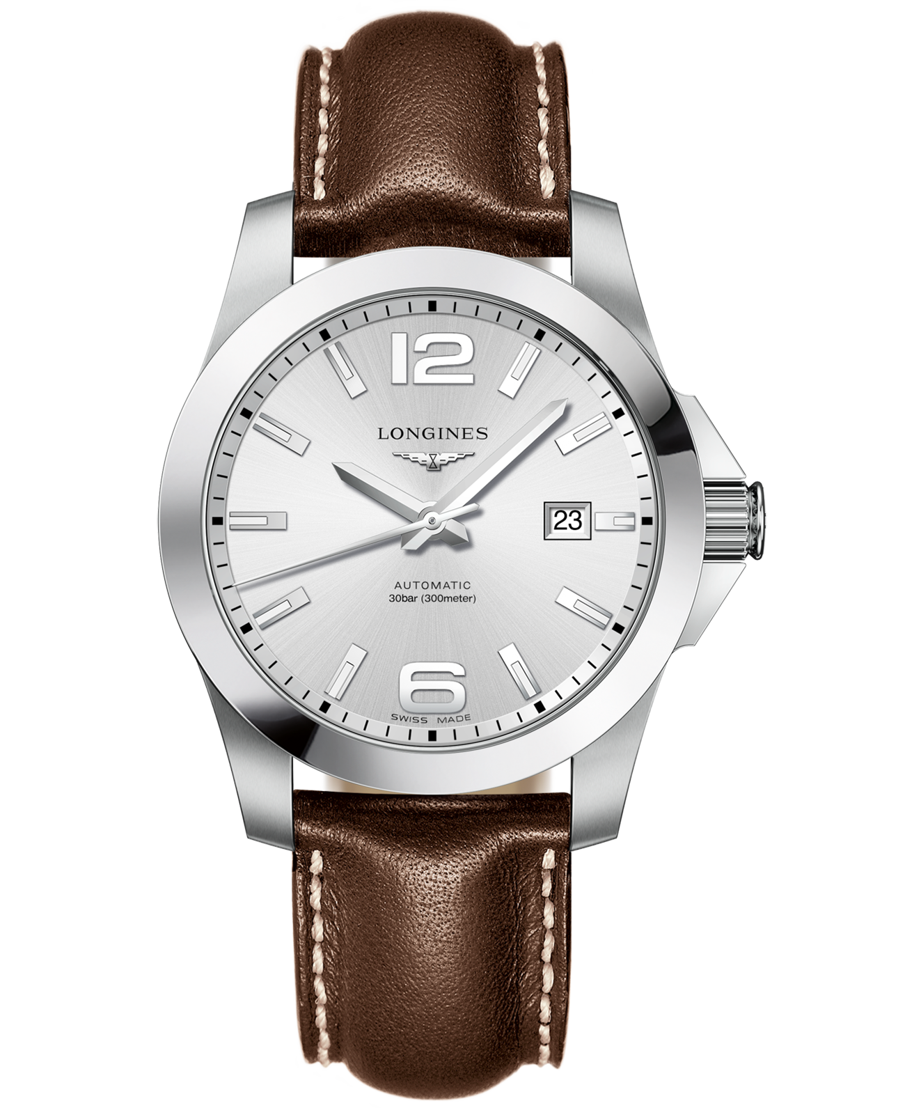 Мужские швейцарские механические часы Longines Conquest L3.777.4.76.5 сочетают классику и спортивный стиль. Швейцарский автоматический калибр L888 с запасом хода на 64 часа защищён корпусом из нержавеющей стали 316L. Часы имеют следующие особенности: завинчивающаяся заводная головка, люминесцентная подсветкаЛюминесцентное покрытиеПозволяет считывать показания времени в темноте. Производители наносят на стрелки, часовые индексы, безель или поверхность циферблата светонакопительный состав, дающий холодное свечение., закручивающаяся задняя крышка, антибликовое покрытиеАнтибликовое покрытиеСлой оксида металла в 0,13-0,3 микрон, благодаря которому стекло часов не бликует и не отражает свет. Антибликовое покрытие уменьшает отражение света в 10 раз, обеспечивая отличную читаемость показателей циферблата. сапфирового стекла. Сохраняется водостойкость до 30 бар.