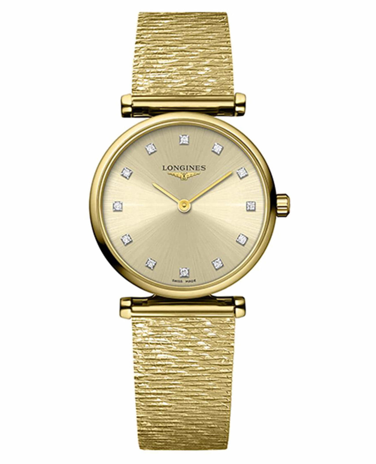 Женские швейцарские часы Longines La Grande Classique L4.209.2.33.8, кварцевый механизм с высокой точностью. Сапфировое стеклоСапфировое стеклоПрочный и надёжный материал из кристалла сапфира синтетического происхождения, характеризующийся особой твёрдостью и устойчивостью к царапинам и повреждениям. устойчивое к появлению царапин, обладающее высокой прозрачностью. Корпус часов изготовлен из стали с PVD-покрытиемPVDУльтратонкое покрытие наносится в технике вакуумного напыления, сочетает в себе нитрид титана особой прочности со слоем золота или оксида хрома. Несёт в себе декоративную или защитную функцию.. Циферблат дополнен 12 бриллиантами. Класс водозащиты: 30 метров, позволит защитить корпус от случайных брызг или капель дождя. Браслет из стали с PVD-покрытиемPVDУльтратонкое покрытие наносится в технике вакуумного напыления, сочетает в себе нитрид титана особой прочности со слоем золота или оксида хрома. Несёт в себе декоративную или защитную функцию. на раскладной застёжкеРаскладная застёжкаТакой тип застёжки используется только на браслетах из металла. Она никогда не раскрывается полностью, происходит разделение на 2 и более частей. Раскладывающая застёжка снизит вероятность потери часов к минимуму..