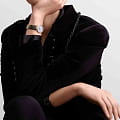 Стальной браслет с частичным PVD-покрытиемPVDУльтратонкое покрытие наносится в технике вакуумного напыления, сочетает в себе нитрид титана особой прочности со слоем золота или оксида хрома. Несёт в себе декоративную или защитную функцию. и застёжкой-бабочкой с кнопкамиЗастёжка "бабочка"Такой вид застёжки дополняется предохранителями, помогающими избежать случайного раскрытия браслета. Обладают изящным исполнением. завершает образ, делая часы удобными и практичными в использовании.