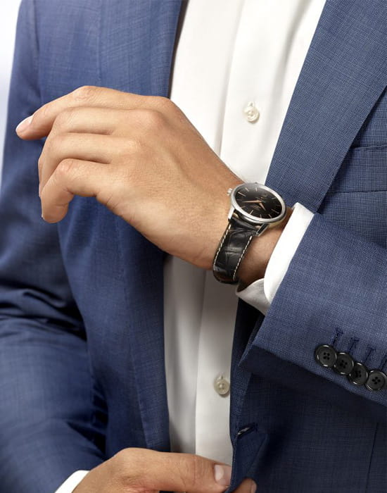 Классический аксессуар с позолоченными стрелками дополнен ремешком из кожи аллигатора. Корпус часов изготовлен из стали. Швейцарский автоматический калибр L616 отличается запасом хода на 42 часа. Сапфировое стеклоСапфировое стеклоПрочный и надёжный материал из кристалла сапфира синтетического происхождения, характеризующийся особой твёрдостью и устойчивостью к царапинам и повреждениям. имеет антибликовую обработкуАнтибликовое покрытиеСлой оксида металла в 0,13-0,3 микрон, благодаря которому стекло часов не бликует и не отражает свет. Антибликовое покрытие уменьшает отражение света в 10 раз, обеспечивая отличную читаемость показателей циферблата.. Класс водозащиты: 30 метров, позволит защитить корпус от случайных брызг или капель дождя.
