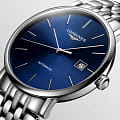 Часы Longines Elegant Collection (артикул L4.910.4.92.6) сочетают изысканный дизайн и высокое часовое мастерство. Корпус диаметром 39 мм выполнен из нержавеющей стали, оснащён прозрачной задней крышкой из сапфирового стеклаСапфировое стеклоПрочный и надёжный материал из кристалла сапфира синтетического происхождения, характеризующийся особой твёрдостью и устойчивостью к царапинам и повреждениям., что позволяет наблюдать за работой механизма. Водозащита составляет 3 бар (30 метров). Синий циферблат с солнечным узором украшен накладными часовыми метками и серебристыми полированными стрелками, а окошко даты расположено в позиции «3 часа». Циферблат защищён сапфировым стекломСапфировое стеклоПрочный и надёжный материал из кристалла сапфира синтетического происхождения, характеризующийся особой твёрдостью и устойчивостью к царапинам и повреждениям..