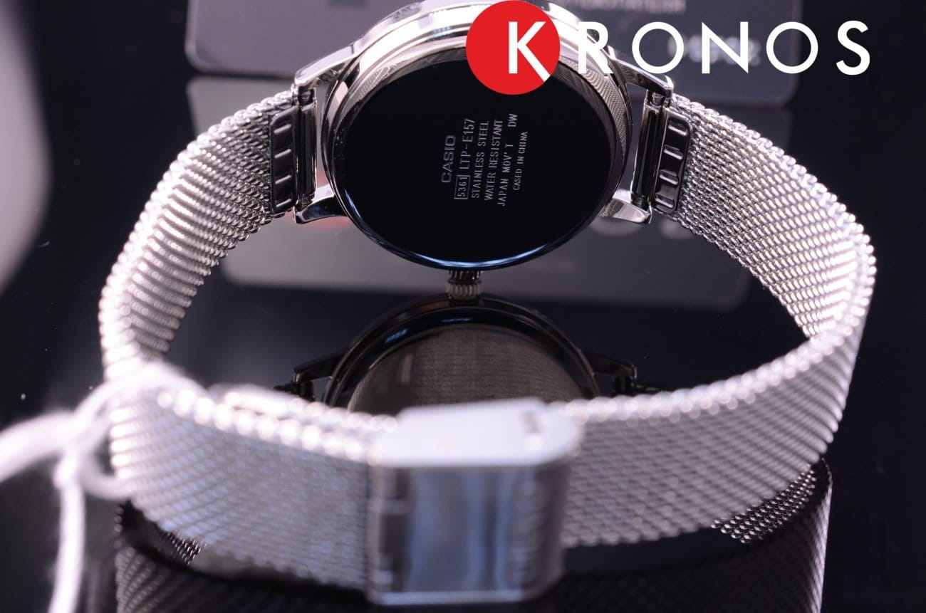 Японские женские кварцевые часы с минеральным стекломМинеральное стеклоМинеральное стекло представляет собой искусственно выращенный минерал кварца. Такое стекло отличается особой устойчивостью к повреждениям и царапинам. Уступает по некоторым качествам сапфировому стеклу. Casio Collection LTP-E157M-7ADF, кварцевый механизм с высокой точностью. Японские женские часы из коллекции LTP являются представителем линейки минималистичных и лаконичных моделей, подходящих для дополнения делового, повседневного образа, наряда для торжественных случаев. Серебристая гамма всегда останется актуальной, давая возможность экспериментировать с цветовыми сочетаниями в одежде. Корпус часов изготовлен из нержавеющей стали. Класс водозащиты: 50 метров, позволит защитить корпус от случайных брызг или капель дождя. Стальной браслет миланского плетения на раскладной застёжкеРаскладная застёжкаТакой тип застёжки используется только на браслетах из металла. Она никогда не раскрывается полностью, происходит разделение на 2 и более частей. Раскладывающая застёжка снизит вероятность потери часов к минимуму..