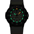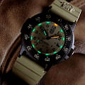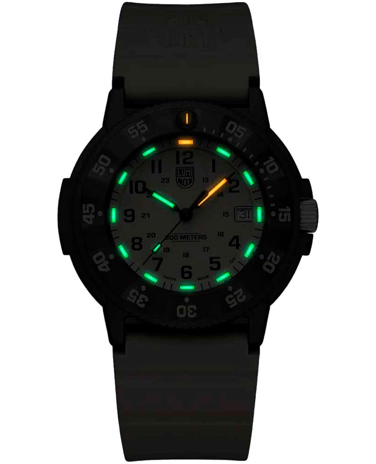 Мужские наручные часы Luminox XS.3010.EVO.S из коллекции Original Navy SEAL сочетают в себе спортивный дизайн и надежность швейцарского качества . Модель обладает круглым корпусом диаметром 43 мм, изготовленным из карбонаКарбонОт «carbon», «carbone» - углерод, углепластик - полимерный композиционный материал из переплетённых под определенным углом между собой нитей углеродного волокна, применяется для изготовления лёгких, но прочных деталей. В часах часто используют для украшения циферблатов и ремешков. Так же карбон используется в изготовлении корпусов. Такие корпуса обладают антикоррозионным свойством, не поддаются электромагнитному излучению, обладают повышенной прочностью и противоударностью. (CARBONOX™), что обеспечивает высокую устойчивость к внешним воздействиям при сохранении легкости. Циферблат песочного цвета украшен контрастными метками и стрелками с , гарантирующим постоянную видимость времени даже в условиях низкой освещенности благодаря системе LLTLLTLLT — это автономный механизм подсветки, основанный на использовании микроскопических газонаполненных элементов. Специальные герметичные капсулы из боросиликатного стекла, интегрированные в циферблат, генерируют свечение без необходимости подключения к внешним источникам энергии. Для их работы не требуется ни дополнительный свет, ни механическое воздействие (например, нажатие кнопки). Свечение возникает благодаря химическому процессу: реакция между тритием, заключенным в капсулах, и люминофорным покрытием создает стабильное автономное освещение. Технология обеспечивает энергетическую независимость и долговечность подсветки. (микрогазовые огни). Часы оснащены кварцевым механизмом швейцарского производства, обеспечивающим точность хода ±15 секунд в месяц. Защиту циферблата обеспечивает прочное сапфировое стеклоСапфировое стеклоПрочный и надёжный материал из кристалла сапфира синтетического происхождения, характеризующийся особой твёрдостью и устойчивостью к царапинам и повреждениям. с антибликовым покрытиемАнтибликовое покрытиеСлой оксида металла в 0,13-0,3 микрон, благодаря которому стекло часов не бликует и не отражает свет. Антибликовое покрытие уменьшает отражение света в 10 раз, обеспечивая отличную читаемость показателей циферблата., устойчивое к царапинам и механическим повреждениям . Водонепроницаемость модели достигает 20 атмосфер (200 метров), что делает их подходящими для плавания и активного отдыха на воде, включая дайвинг. Модель также оснащена безелемБезельВнешний ободок, закрепляющий стекло. В спортивных часах так называется поворотное кольцо с делениями на циферблате, выполняет роль таймера – замеряет отрезки времени на шкале. Неподвижный безель – элемент декора. Однонаправленно вращающийся безель на дайверских часах позволяет фиксировать моменты погружения и выныривания на поверхность. с односторонним вращением, что добавляет функциональности при использовании в водных условиях. Ремешок выполнен из каучука, что обеспечивает комфортное ношение в течение дня. Дополнительно часы имеют окно даты в положении «3 часа», что делает их практичными для повседневного использования. Сочетание современных технологий, надежности и стильного дизайна делает Luminox XS.3010.EVO.S идеальным выбором для ценителей качественных аксессуаров.