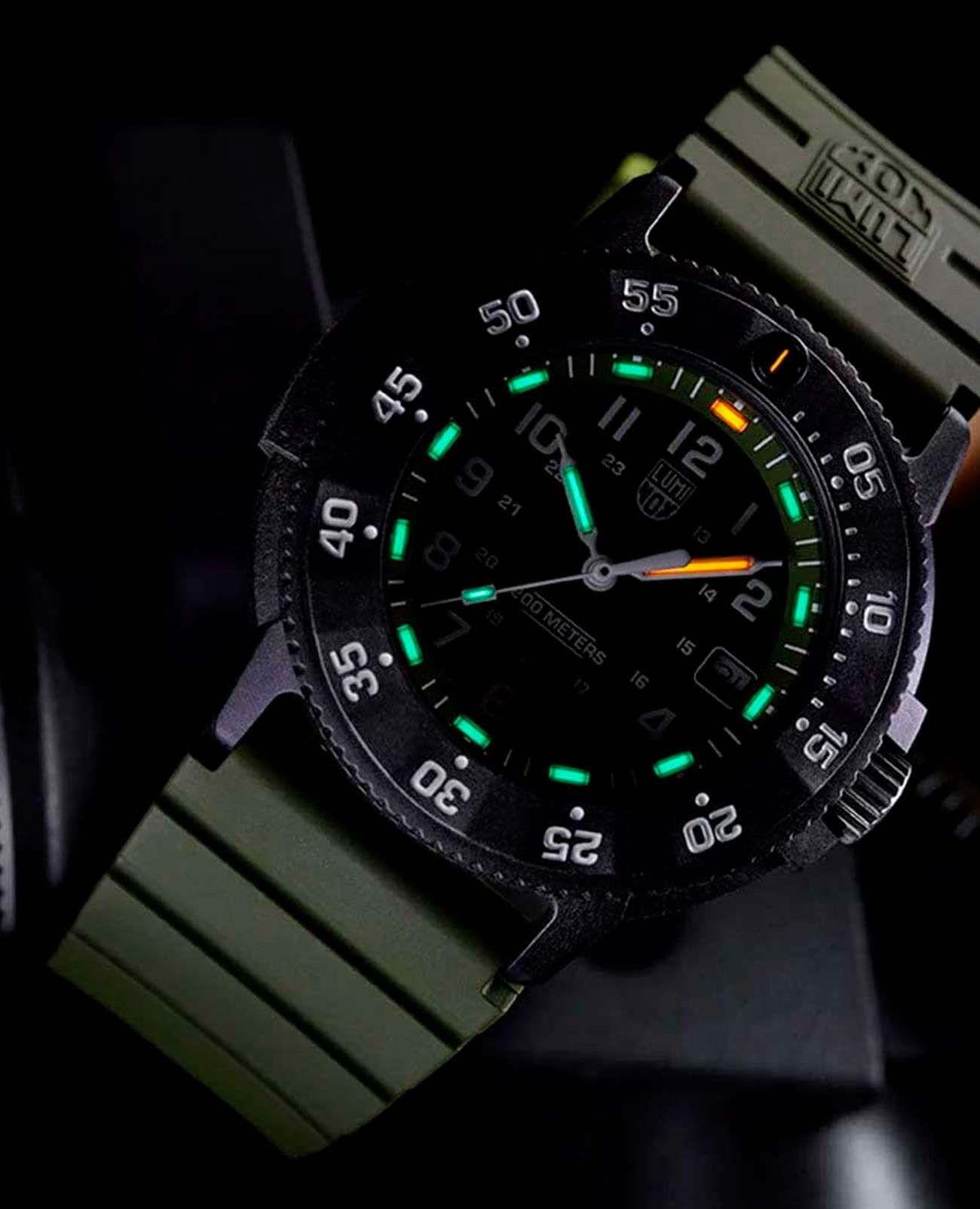 Мужские наручные часы Luminox XS.3013.EVO.S из коллекции Original Navy SEAL сочетают в себе спортивный дизайн и надежность швейцарского качества. Модель обладает круглым корпусом диаметром 43 мм, изготовленным из карбонаКарбонОт «carbon», «carbone» - углерод, углепластик - полимерный композиционный материал из переплетённых под определенным углом между собой нитей углеродного волокна, применяется для изготовления лёгких, но прочных деталей. В часах часто используют для украшения циферблатов и ремешков. Так же карбон используется в изготовлении корпусов. Такие корпуса обладают антикоррозионным свойством, не поддаются электромагнитному излучению, обладают повышенной прочностью и противоударностью. (CARBONOX™), что обеспечивает высокую устойчивость к внешним воздействиям при сохранении легкости . Циферблат зеленого цвета украшен контрастными метками и стрелками с , гарантирующим постоянную видимость времени даже в условиях низкой освещенности благодаря системе LLTLLTLLT — это автономный механизм подсветки, основанный на использовании микроскопических газонаполненных элементов. Специальные герметичные капсулы из боросиликатного стекла, интегрированные в циферблат, генерируют свечение без необходимости подключения к внешним источникам энергии. Для их работы не требуется ни дополнительный свет, ни механическое воздействие (например, нажатие кнопки). Свечение возникает благодаря химическому процессу: реакция между тритием, заключенным в капсулах, и люминофорным покрытием создает стабильное автономное освещение. Технология обеспечивает энергетическую независимость и долговечность подсветки. (микрогазовые огни) . Часы оснащены кварцевым механизмом швейцарского производства, обеспечивающим точность хода ±15 секунд в месяц . Защиту циферблата обеспечивает прочное сапфировое стеклоСапфировое стеклоПрочный и надёжный материал из кристалла сапфира синтетического происхождения, характеризующийся особой твёрдостью и устойчивостью к царапинам и повреждениям. с антибликовым покрытиемАнтибликовое покрытиеСлой оксида металла в 0,13-0,3 микрон, благодаря которому стекло часов не бликует и не отражает свет. Антибликовое покрытие уменьшает отражение света в 10 раз, обеспечивая отличную читаемость показателей циферблата., устойчивое к царапинам и механическим повреждениям . Водонепроницаемость модели достигает 20 атмосфер (200 метров), что делает их подходящими для плавания и активного отдыха на воде, включая дайвинг . Модель также оснащена безелемБезельВнешний ободок, закрепляющий стекло. В спортивных часах так называется поворотное кольцо с делениями на циферблате, выполняет роль таймера – замеряет отрезки времени на шкале. Неподвижный безель – элемент декора. Однонаправленно вращающийся безель на дайверских часах позволяет фиксировать моменты погружения и выныривания на поверхность. с односторонним вращением, что добавляет функциональности при использовании в водных условиях . Ремешок выполнен из зеленого каучука, что обеспечивает комфортное ношение в течение дня и удобство в уходе . Дополнительно часы имеют окно даты в положении «3 часа», что делает их практичными для повседневного использования . Сочетание современных технологий, надежности и стильного дизайна делает Luminox XS.3013.EVO.S идеальным выбором для ценителей качественных аксессу
