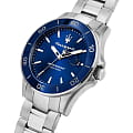 Мужские итальянские часы Maserati Competizione R8853100036, кварцевый механизм с высокой точностью. Корпус часов изготовлен из стали. БезельБезельВнешний ободок, закрепляющий стекло. В спортивных часах так называется поворотное кольцо с делениями на циферблате, выполняет роль таймера – замеряет отрезки времени на шкале. Неподвижный безель – элемент декора. Однонаправленно вращающийся безель на дайверских часах позволяет фиксировать моменты погружения и выныривания на поверхность. из стали с PVD-покрытиемPVDУльтратонкое покрытие наносится в технике вакуумного напыления, сочетает в себе нитрид титана особой прочности со слоем золота или оксида хрома. Несёт в себе декоративную или защитную функцию.. Стрелки с люминесцентным покрытиемЛюминесцентное покрытиеПозволяет считывать показания времени в темноте. Производители наносят на стрелки, часовые индексы, безель или поверхность циферблата светонакопительный состав, дающий холодное свечение.. Класс водозащиты: 100 метров, позволит плавать, нырять и заниматься другими водными видами спорта. Стальной браслет на раскладной застёжкойРаскладная застёжкаТакой тип застёжки используется только на браслетах из металла. Она никогда не раскрывается полностью, происходит разделение на 2 и более частей. Раскладывающая застёжка снизит вероятность потери часов к минимуму..