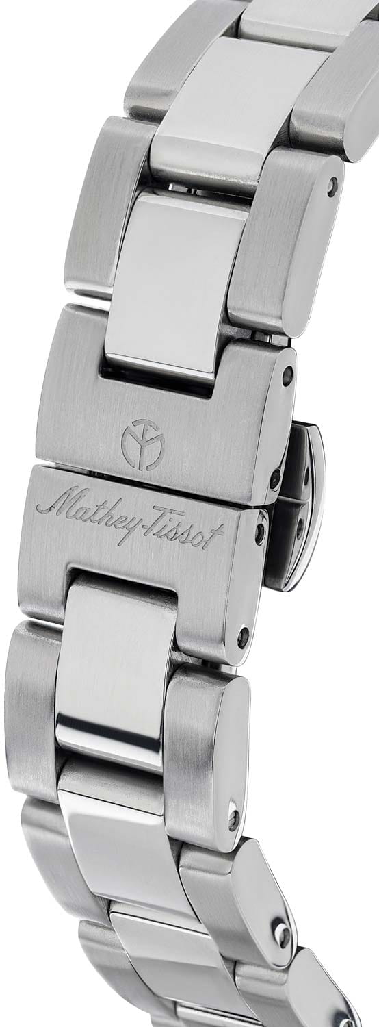 Женские кварцевые часы Mathey-Tissot Molly D1087AQI — это стильное сочетание элегантности и современного дизайна. Изящный корпус выполнен из нержавеющей стали серебристого цвета, диаметром 32 мм, что придаст образу элегантности и надежности. БезельБезельВнешний ободок, закрепляющий стекло. В спортивных часах так называется поворотное кольцо с делениями на циферблате, выполняет роль таймера – замеряет отрезки времени на шкале. Неподвижный безель – элемент декора. Однонаправленно вращающийся безель на дайверских часах позволяет фиксировать моменты погружения и выныривания на поверхность. и циферблат украшены кристаллами. Изысканный циферблат с метками в виде точек придает модели особый блеск. Циферблат защищен минеральным стекломМинеральное стеклоМинеральное стекло представляет собой искусственно выращенный минерал кварца. Такое стекло отличается особой устойчивостью к повреждениям и царапинам. Уступает по некоторым качествам сапфировому стеклу. с сапфировым покрытием, обеспечивает устойчивость к царапинам. Часы оснащены надежным кварцевым механизмом. Стальной браслет на застёжке-бабочке с кнопкамиЗастёжка "бабочка"Такой вид застёжки дополняется предохранителями, помогающими избежать случайного раскрытия браслета. Обладают изящным исполнением. , гарантирует комфортное и безопасное ношение. Класс водозащиты: 50 метров позволит защитить корпус от случайных брызг или капель дождя. Mathey-Tissot — отличный выбор для тех, кто ценит утонченность и качество.