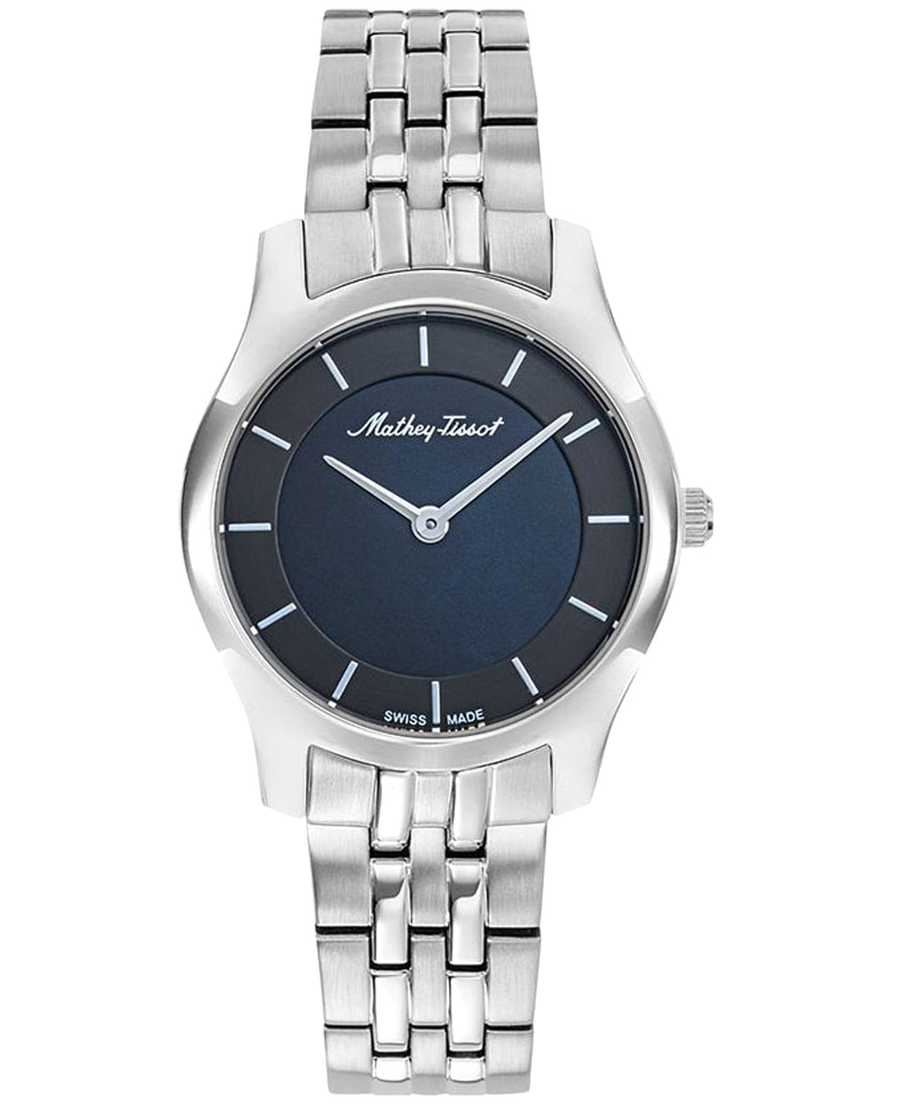 Женские кварцевые часы Mathey-Tissot Tacy D949AN — это стильное сочетание элегантности и современного дизайна. Изящный корпус выполнен из стали 316L и прекрасно впишется в ваш исключительный стиль. Изысканный циферблат с метками придает модели особый блеск и защищен минеральным стекломМинеральное стеклоМинеральное стекло представляет собой искусственно выращенный минерал кварца. Такое стекло отличается особой устойчивостью к повреждениям и царапинам. Уступает по некоторым качествам сапфировому стеклу., обеспечивающим устойчивость к царапинам. Перламутровый циферблат. Заостренные прямоугольные стрелки в стиле Baton. Часы оснащены надежным кварцевым механизмом. Стальной браслет на раскладной застёжкеРаскладная застёжкаТакой тип застёжки используется только на браслетах из металла. Она никогда не раскрывается полностью, происходит разделение на 2 и более частей. Раскладывающая застёжка снизит вероятность потери часов к минимуму. гарантирует комфортное и безопасное ношение. Класс водозащиты: 50 метров позволит защитить корпус от случайных брызг или капель дождя. Mathey-Tissot — отличный выбор для тех, кто ценит утонченность и качество.