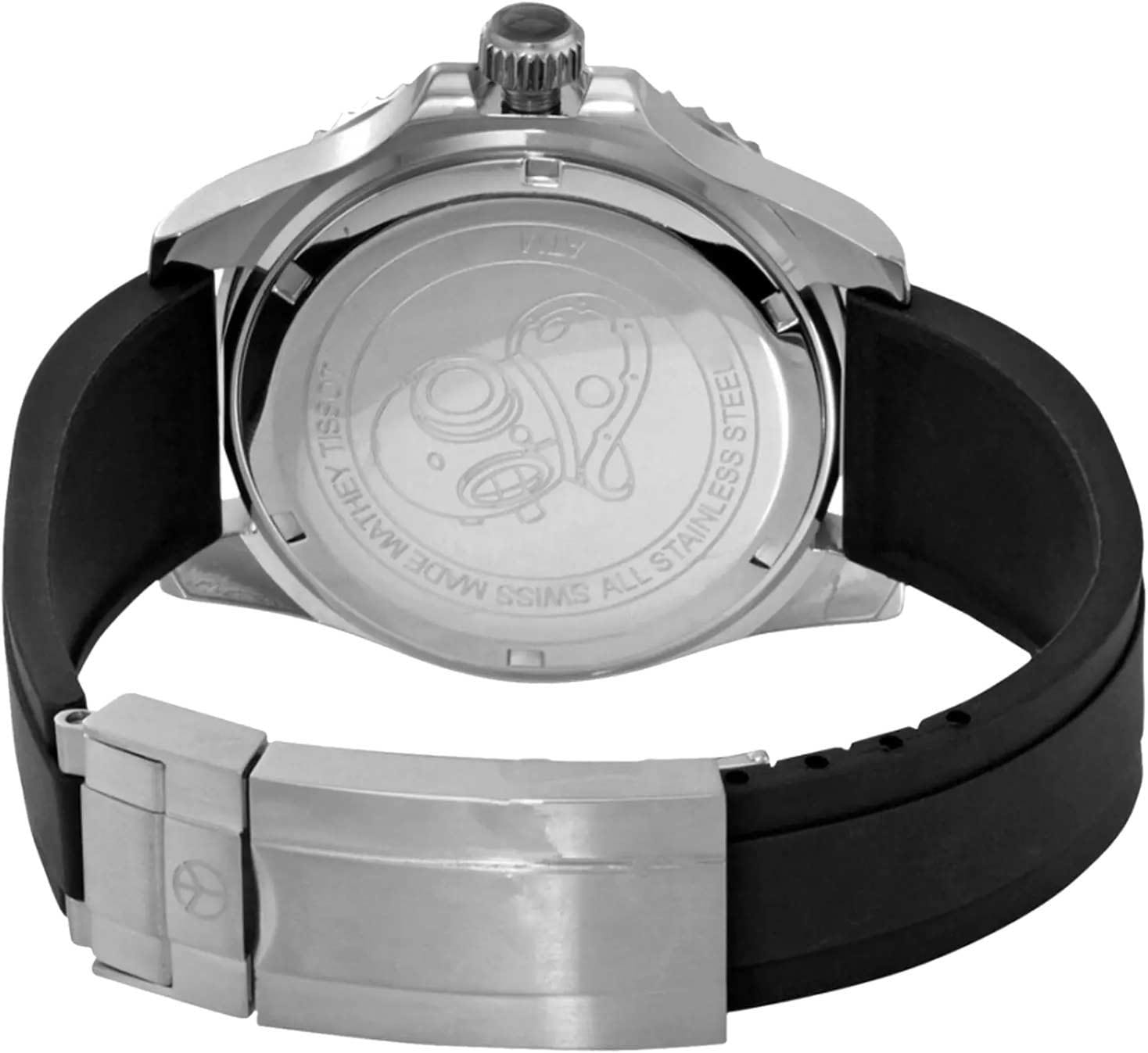 Мужские кварцевые часы Mathey-Tissot Mathy H909AN — это стильное сочетание элегантности и современного дизайна. Изящный корпус выполнен из нержавеющей стали, диаметром 42 мм, что придаст образу элегантности и надежности. Циферблат с метками в виде точек и арабских цифр придает модели особый блеск. Циферблат защищен минеральным стекломМинеральное стеклоМинеральное стекло представляет собой искусственно выращенный минерал кварца. Такое стекло отличается особой устойчивостью к повреждениям и царапинам. Уступает по некоторым качествам сапфировому стеклу. с сапфировым покрытием, обеспечивает устойчивость к царапинам. Стрелки и метки с люминесцентным покрытиемЛюминесцентное покрытиеПозволяет считывать показания времени в темноте. Производители наносят на стрелки, часовые индексы, безель или поверхность циферблата светонакопительный состав, дающий холодное свечение.. Окошко даты находится в положении 3 часа.  Вращающийся безельБезельВнешний ободок, закрепляющий стекло. В спортивных часах так называется поворотное кольцо с делениями на циферблате, выполняет роль таймера – замеряет отрезки времени на шкале. Неподвижный безель – элемент декора. Однонаправленно вращающийся безель на дайверских часах позволяет фиксировать моменты погружения и выныривания на поверхность. в одном направлении. Часы оснащены надежным кварцевым механизмом. Силиконовый ремешок с раскладной застёжкойРаскладная застёжкаТакой тип застёжки используется только на браслетах из металла. Она никогда не раскрывается полностью, происходит разделение на 2 и более частей. Раскладывающая застёжка снизит вероятность потери часов к минимуму. гарантирует комфортное и безопасное ношение. Класс водозащиты: 200 метров позволит плавать, нырять и заниматься другими водными видами спорта. Mathey-Tissot  — отличный выбор для тех, кто ценит утонченность и качество.