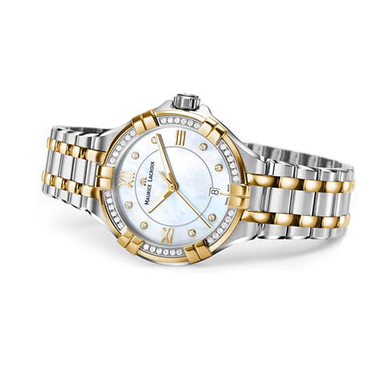 Женские швейцарские часы с бриллиантами Maurice Lacroix Aikon Quartz AI1006-PVY23-171-1, кварцевый механизм с высокой точностью. Сапфировое стекло устойчивое к появлению царапин, обладающее высокой прозрачностью. Класс водозащиты: 100 метров, позволит плавать, нырять и заниматься другими водными видами спорта. Корпус часов изготовлен из стали, разноцветного цвета.