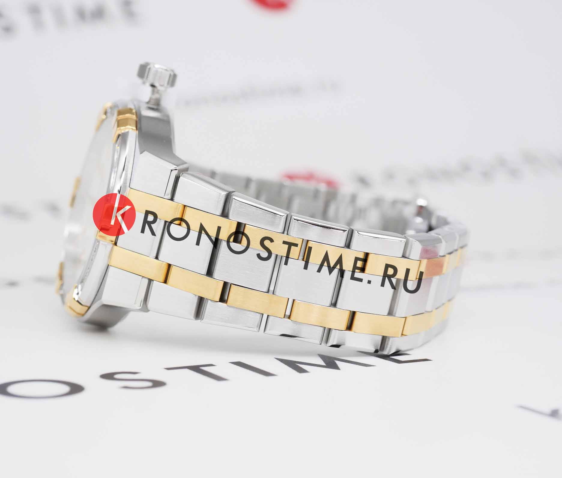Мужские швейцарские кварцевые часы Maurice Lacroix Aikon Quartz AI1106-PVPD2-170-1. Сапфировое стеклоСапфировое стеклоПрочный и надёжный материал из кристалла сапфира синтетического происхождения, характеризующийся особой твёрдостью и устойчивостью к царапинам и повреждениям. устойчивое к появлению царапин, обладающее высокой прозрачностью. Перламутровый циферблат. Стрелки с люминесцентным покрытиемЛюминесцентное покрытиеПозволяет считывать показания времени в темноте. Производители наносят на стрелки, часовые индексы, безель или поверхность циферблата светонакопительный состав, дающий холодное свечение.. Метки на циферблате и безельБезельВнешний ободок, закрепляющий стекло. В спортивных часах так называется поворотное кольцо с делениями на циферблате, выполняет роль таймера – замеряет отрезки времени на шкале. Неподвижный безель – элемент декора. Однонаправленно вращающийся безель на дайверских часах позволяет фиксировать моменты погружения и выныривания на поверхность. украшены бриллиантами. Класс водозащиты: 100 метров, позволит плавать, нырять и заниматься другими водными видами спорта. Окошко даты находится в положении 3 часов. Корпус и браслет часов изготовлены из стали с частичным PVD-покрытиемPVDУльтратонкое покрытие наносится в технике вакуумного напыления, сочетает в себе нитрид титана особой прочности со слоем золота или оксида хрома. Несёт в себе декоративную или защитную функцию.. Браслет с застёжкой «бабочка» с кнопкамиЗастёжка "бабочка"Такой вид застёжки дополняется предохранителями, помогающими избежать случайного раскрытия браслета. Обладают изящным исполнением. .