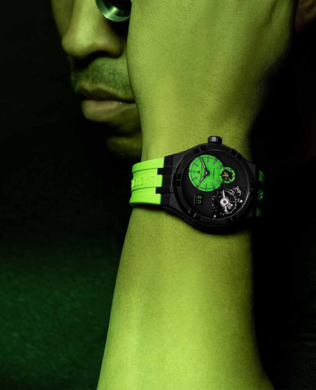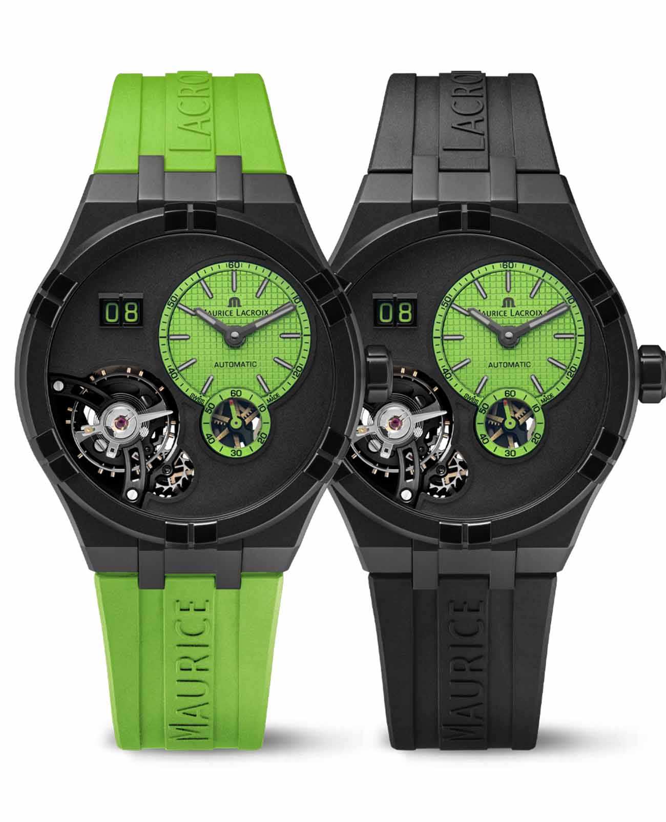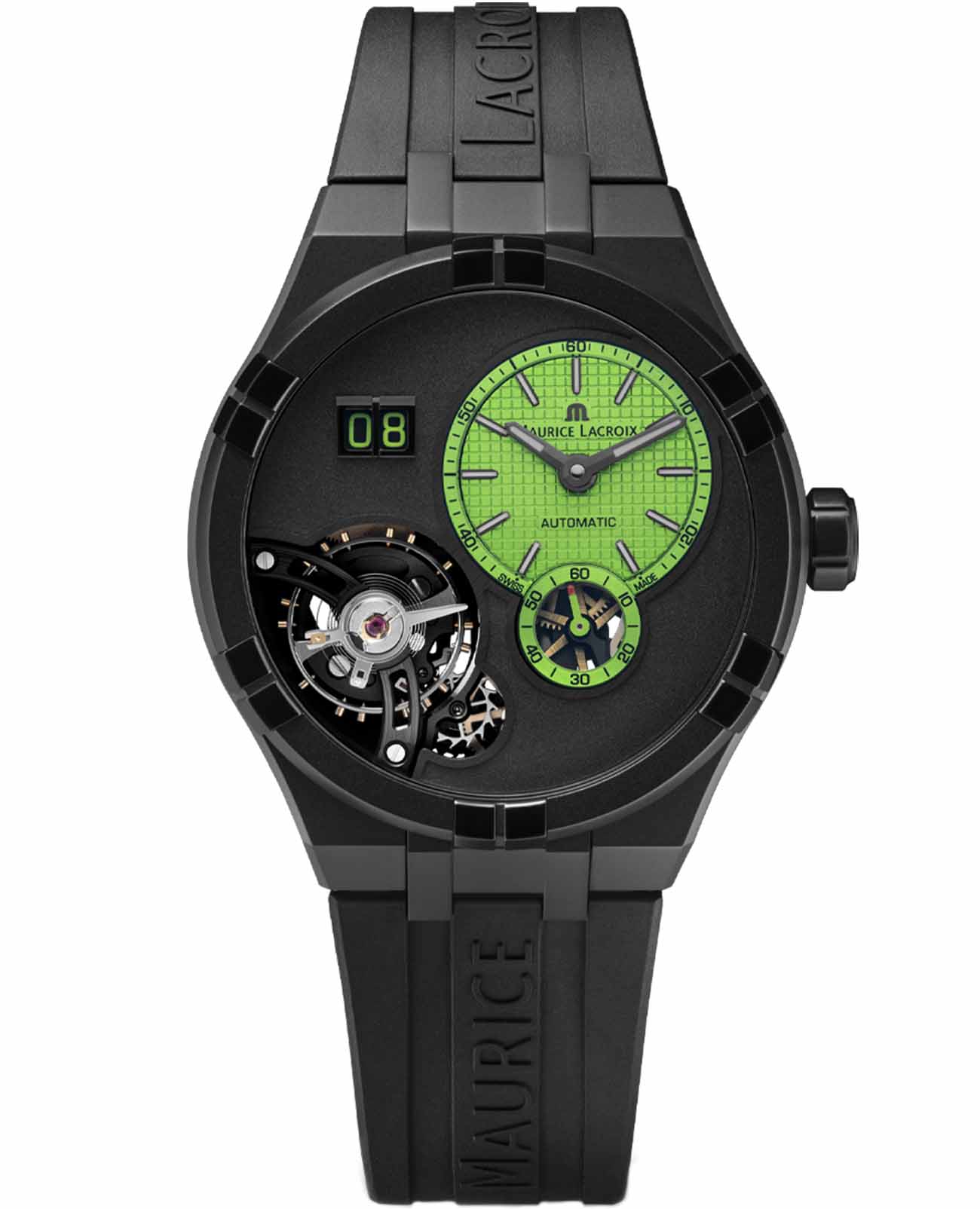 Швейцарские часы Maurice Lacroix Aikon Master Grand Date AI6118-DLB0J-630-I — это воплощение высоких стандартов часового искусства и современного стиля. В основе этого изысканного аксессуара лежит надежный механический механизм с автоподзаводом, калибр ML331, который обеспечивает точность и долговечность. Часы обладают запасом хода в 50 часов, а частота их работы составляет 18 000 полуколебаний в час. Корпус изготовлен из стали с высокотехнологичным DLC-покрытиемDLC-покрытиеDiamond like carbon - одно из лучших видов покрытия, представляющее собой углерод с алмазными свойствами. На поверхность материала наносятся распавшиеся молекулы углерода, превращающиеся в плёнку из алмазоподобных связей, которая перенимает твёрдость алмаза., придающим дополнительную прочность и стойкость к износу. Черно-зеленый циферблат выделяется благодаря эффектному дизайну со смещенным центром, а также прозрачному окошку, через которое можно наблюдать за работой механизма. БезельБезельВнешний ободок, закрепляющий стекло. В спортивных часах так называется поворотное кольцо с делениями на циферблате, выполняет роль таймера – замеряет отрезки времени на шкале. Неподвижный безель – элемент декора. Однонаправленно вращающийся безель на дайверских часах позволяет фиксировать моменты погружения и выныривания на поверхность. привлекает внимание своим оригинальным дизайном из шести «когтей». Водозащита на уровне 100WR позволяет использовать часы в различных условиях, включая плавание. Стрелки и метки с люминесцентным покрытиемЛюминесцентное покрытиеПозволяет считывать показания времени в темноте. Производители наносят на стрелки, часовые индексы, безель или поверхность циферблата светонакопительный состав, дающий холодное свечение., что облегчает чтение времени даже в условиях слабого освещения. Сапфировое стеклоСапфировое стеклоПрочный и надёжный материал из кристалла сапфира синтетического происхождения, характеризующийся особой твёрдостью и устойчивостью к царапинам и повреждениям. с двойным антибликовым покрытиемАнтибликовое покрытиеСлой оксида металла в 0,13-0,3 микрон, благодаря которому стекло часов не бликует и не отражает свет. Антибликовое покрытие уменьшает отражение света в 10 раз, обеспечивая отличную читаемость показателей циферблата. защищает циферблат от царапин и бликов, а прозрачная задняя крышка из сапфирового стекла крепится на 7 винтах, позволяя наслаждаться видом внутреннего механизма. Часы также оснащены функцией большого календаря, расположенного на отметке 10 часов, и завинчивающейся заводной головкой, что добавляет надежности конструкции. Каучуковый ремешок с классической застежкой и системой быстрой замены обеспечивает комфорт и стильный внешний вид. В комплекте идет дополнительный сменный ремешок, что расширяет возможности для персонализации.