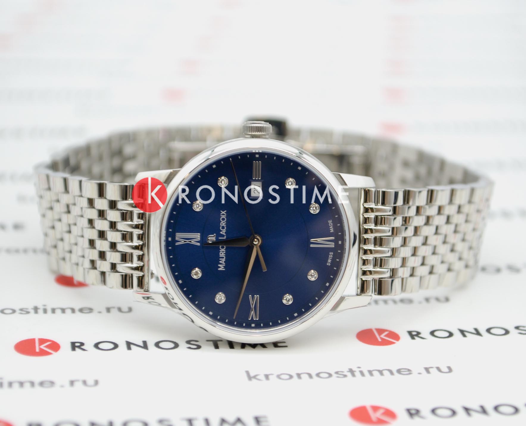 Женские швейцарские часы Maurice Lacroix Eliros EL1094-SS002-450-1, кварцевый механизм с высокой точностью. Сапфировое стеклоСапфировое стеклоПрочный и надёжный материал из кристалла сапфира синтетического происхождения, характеризующийся особой твёрдостью и устойчивостью к царапинам и повреждениям. устойчивое к появлению царапин, обладающее высокой прозрачностью. Сапфировое стеклоСапфировое стеклоПрочный и надёжный материал из кристалла сапфира синтетического происхождения, характеризующийся особой твёрдостью и устойчивостью к царапинам и повреждениям. устойчивое к появлению царапин, обладающее высокой прозрачностью. Корпус часов изготовлен из нержавеющей стали. Циферблат украшен бриллиантами, окошко даты в положении 3 часов. Класс водозащиты: 50 метров, позволит защитить корпус от случайных брызг или капель дождя. Стальной браслет на застёжке-бабочке с кнопкамиЗастёжка "бабочка"Такой вид застёжки дополняется предохранителями, помогающими избежать случайного раскрытия браслета. Обладают изящным исполнением. .