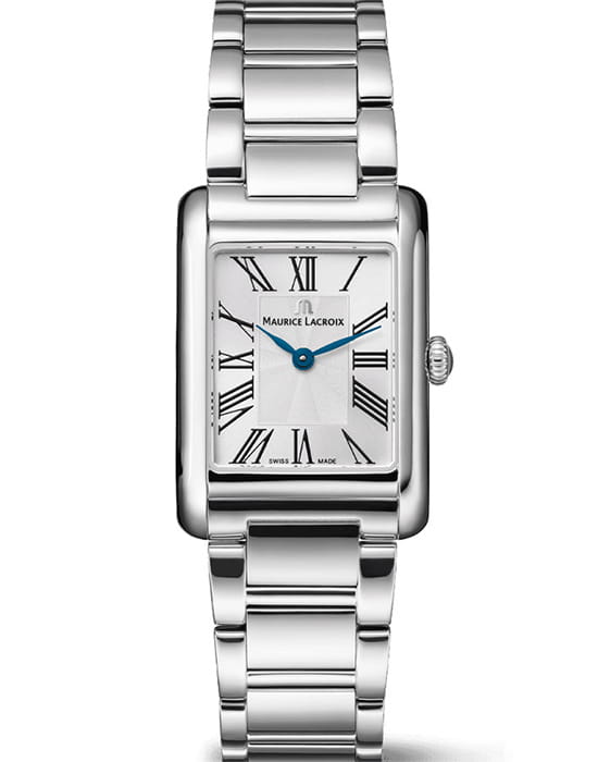Швейцарские женские кварцевые часы Maurice Lacroix FA1205-SS002-110-1 оснащены корпусом из нержавеющей стали с PVD-покрытиемPVDУльтратонкое покрытие наносится в технике вакуумного напыления, сочетает в себе нитрид титана особой прочности со слоем золота или оксида хрома. Несёт в себе декоративную или защитную функцию. размером 24 мм х 34 мм и защищены сапфировым стекломСапфировое стеклоПрочный и надёжный материал из кристалла сапфира синтетического происхождения, характеризующийся особой твёрдостью и устойчивостью к царапинам и повреждениям., устойчивым к мелким механическим повреждениям. Серебряный циферблат украшен часовыми индексами в виде цифр и стрелками, обеспечивающими функции отображения часов и минут. Часы имеют водонепроницаемость 50 метров, позволит защитить корпус от случайных брызг или капель дождя. Модель комплектуется браслетом из нержавеющей стали на раскладном замкеРаскладной замокДанный вариант застежки используется только на часах с металлическим браслетом. Отличительная особенность такого крепления в том, что длина браслета становится универсальной и вы можете самостоятельно отрегулировать нужный вам размер – застежка просто двигается по браслету часов.. Прочный корпус и надежный механизм гарантируют точность хода и долговечность использования. Дизайн и производство часов выполнены в Швейцарии, что подтверждает их высокое качество. Международная гарантия 2 года обеспечивает уверенность в надежности модели. Эти часы сочетают в себе элегантный дизайн и практичность, делая их универсальным аксессуаром для повседневного использования.