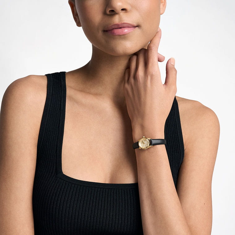 Женские американские часы Michael Kors Lexington MK4901 имеют кварцевый механизм с высокой точностью. Корпус часов изготовлен из нержавеющей стали с PVD-покрытиемPVDУльтратонкое покрытие наносится в технике вакуумного напыления, сочетает в себе нитрид титана особой прочности со слоем золота или оксида хрома. Несёт в себе декоративную или защитную функцию. золотистого цвета, диаметром 19 мм. Циферблат с метками в виде римских цифр защищен минеральным стекломМинеральное стеклоМинеральное стекло представляет собой искусственно выращенный минерал кварца. Такое стекло отличается особой устойчивостью к повреждениям и царапинам. Уступает по некоторым качествам сапфировому стеклу., что обеспечивает надежную защиту от царапин и повреждений. Неподвижный рифленый безельБезельВнешний ободок, закрепляющий стекло. В спортивных часах так называется поворотное кольцо с делениями на циферблате, выполняет роль таймера – замеряет отрезки времени на шкале. Неподвижный безель – элемент декора. Однонаправленно вращающийся безель на дайверских часах позволяет фиксировать моменты погружения и выныривания на поверхность.. Класс водозащиты: 50 метров позволит защитить корпус от случайных брызг или капель дождя. Удобный кожаный ремешок с фирменным рисунком и классической застежкой обеспечивает надежную фиксацию на запястье и легкость в надевании и снятии. Эти часы станут отличным дополнением к любому наряду, подчеркивая индивидуальность и стиль их обладательницы. Идеальный аксессуар, который придаст женскому образу завершенность и особый шарм.