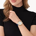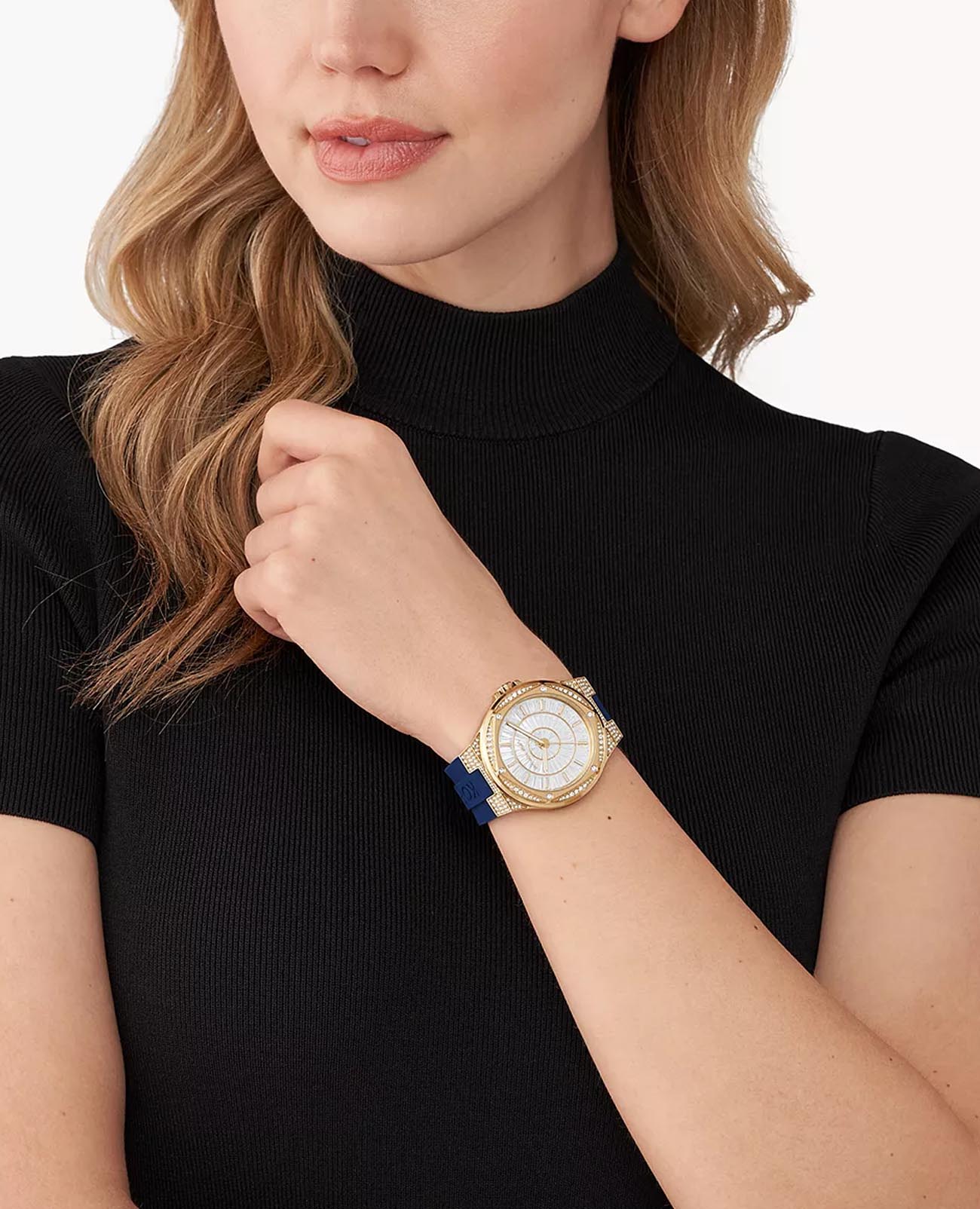 Женские американские часы Michael Kors Lennox MK7333, кварцевый механизм с высокой точностью. Минеральное стеклоМинеральное стеклоМинеральное стекло представляет собой искусственно выращенный минерал кварца. Такое стекло отличается особой устойчивостью к повреждениям и царапинам. Уступает по некоторым качествам сапфировому стеклу. устойчивое к появлению царапин, обладающее высокой прозрачностью. Корпус изготовлен из нержавеющей стали c PVDPVDУльтратонкое покрытие наносится в технике вакуумного напыления, сочетает в себе нитрид титана особой прочности со слоем золота или оксида хрома. Несёт в себе декоративную или защитную функцию. покрытием. БезельБезельВнешний ободок, закрепляющий стекло. В спортивных часах так называется поворотное кольцо с делениями на циферблате, выполняет роль таймера – замеряет отрезки времени на шкале. Неподвижный безель – элемент декора. Однонаправленно вращающийся безель на дайверских часах позволяет фиксировать моменты погружения и выныривания на поверхность. и корпус украшены кристаллами. Метки на цифебрлате в виде штрихов. Стрелки и метки с люминесцентным покрытиемЛюминесцентное покрытиеПозволяет считывать показания времени в темноте. Производители наносят на стрелки, часовые индексы, безель или поверхность циферблата светонакопительный состав, дающий холодное свечение.. Класс водозащиты: 50 метров, позволит защитить корпус от случайных брызг или капель дождя. Силиконовый ремешок на стандартной застёжке.