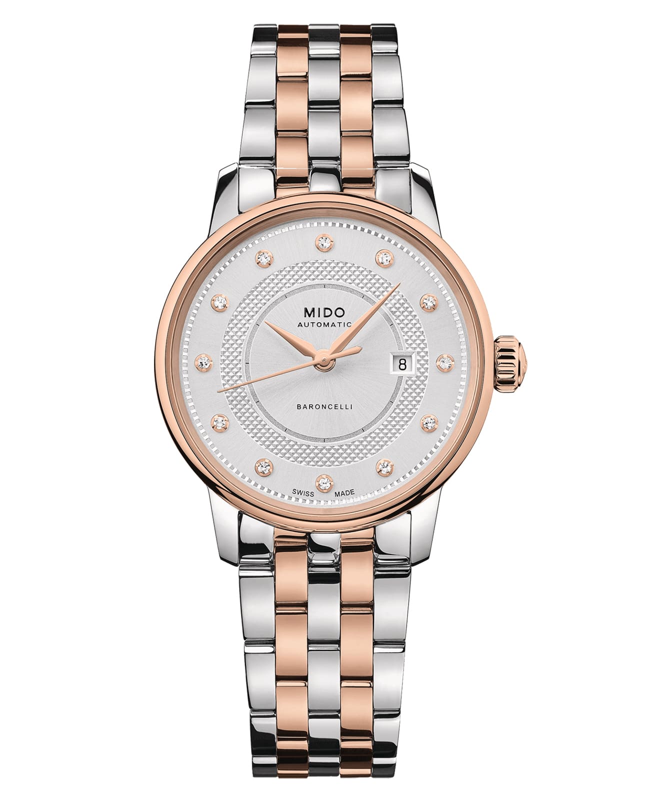 Женские швейцарские механические часы с бриллиантами Mido Baroncelli Signature M037.207.22.036.01, механический механизм (автоматический калибр) с высокой точностью. Модели линейки оснащены пружиной баланса из материала Nivachron®, основными приемуществами которого является гарантия точности, снижение влияния магнитных полей, а также сопротивляемость ударам и воздействиям времени. Сапфировое стекло устойчивое к появлению царапин, обладающее высокой прозрачностью. Класс водозащиты: 50 метров, позволит защитить корпус от случайных брызг или капель дождя. Корпус часов изготовлен из стали, комбинированного цвета.